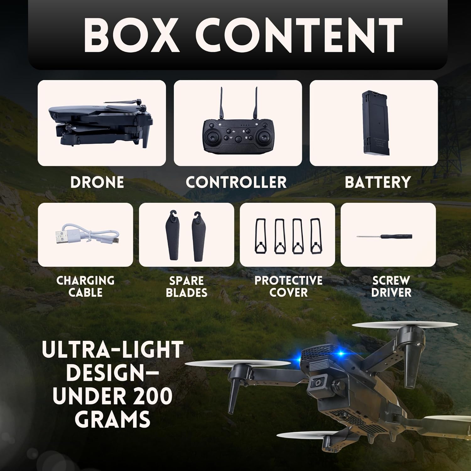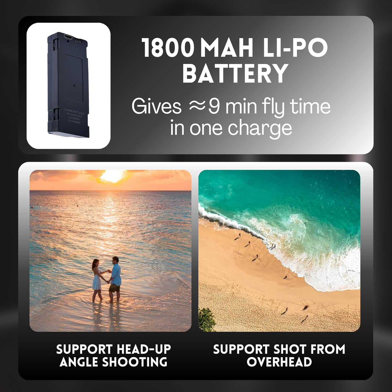 Extended Flight Time and Range: Equipped with two long-lasting batteries, this drone offers 30-35 minutes of flight time and a 1 km range, making it ideal for kids and adults to explore widely.