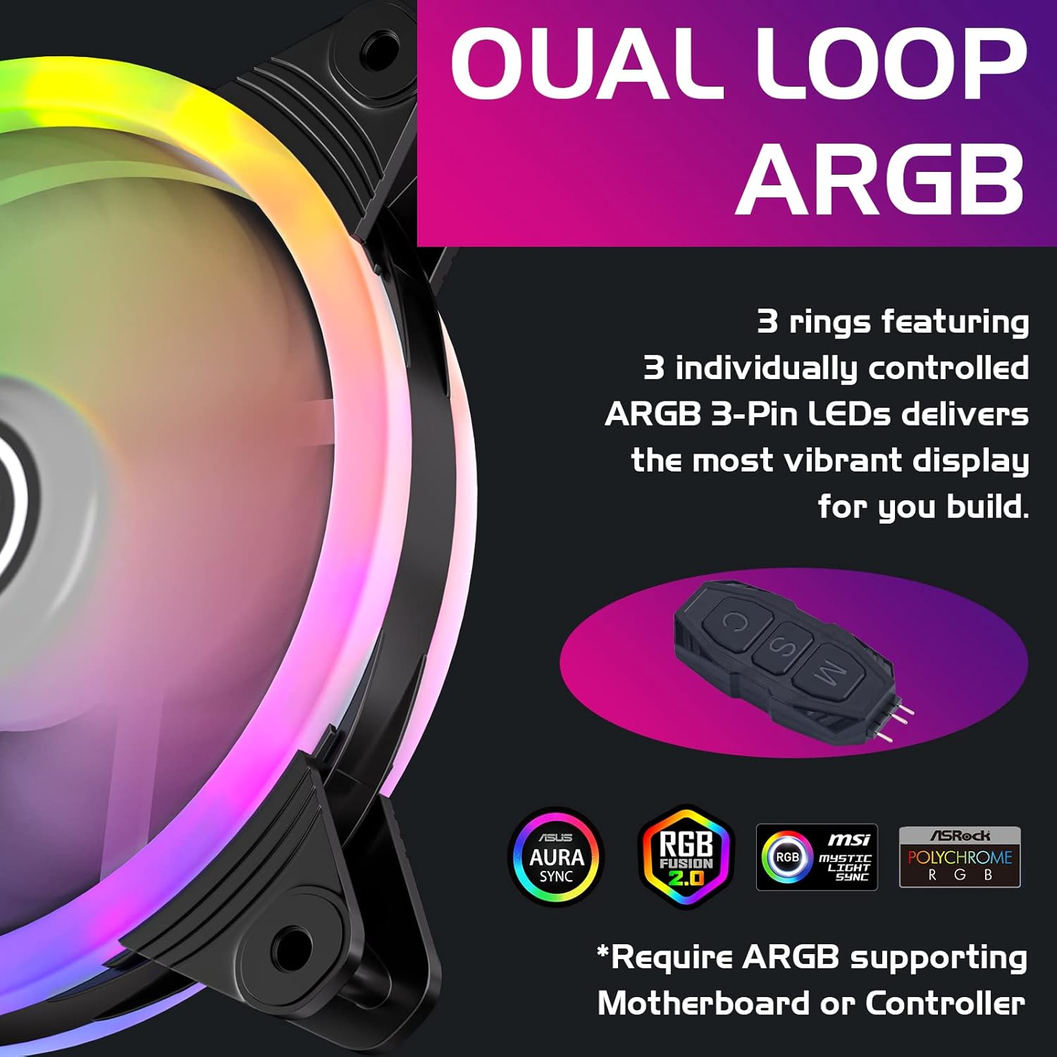 Customizable RGB colors: Rainbow RGB function with motherboard sync-control for 5V 3PIN motherboard including Asus(B350-I) and MSI (X470-M7)