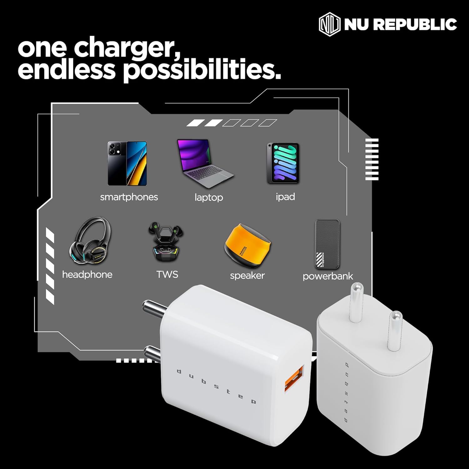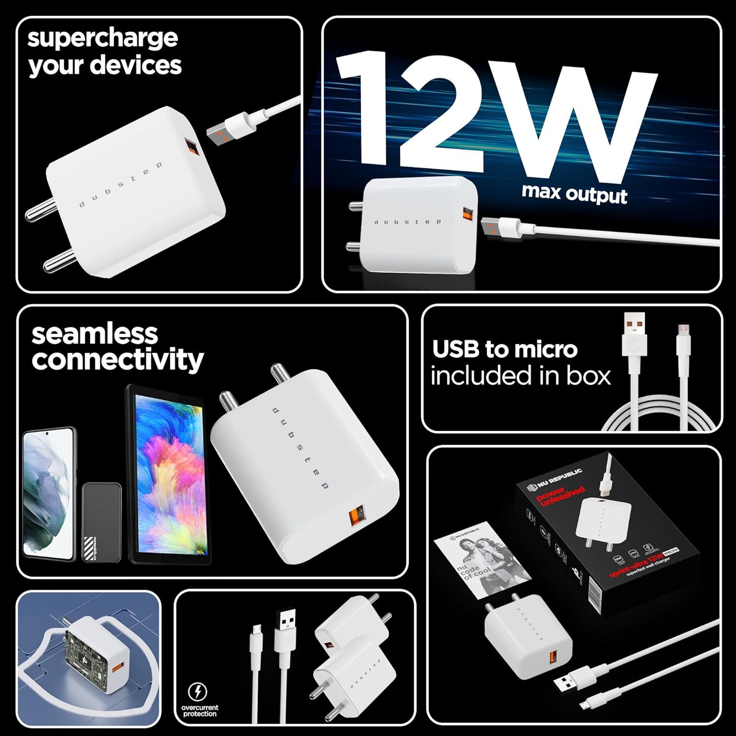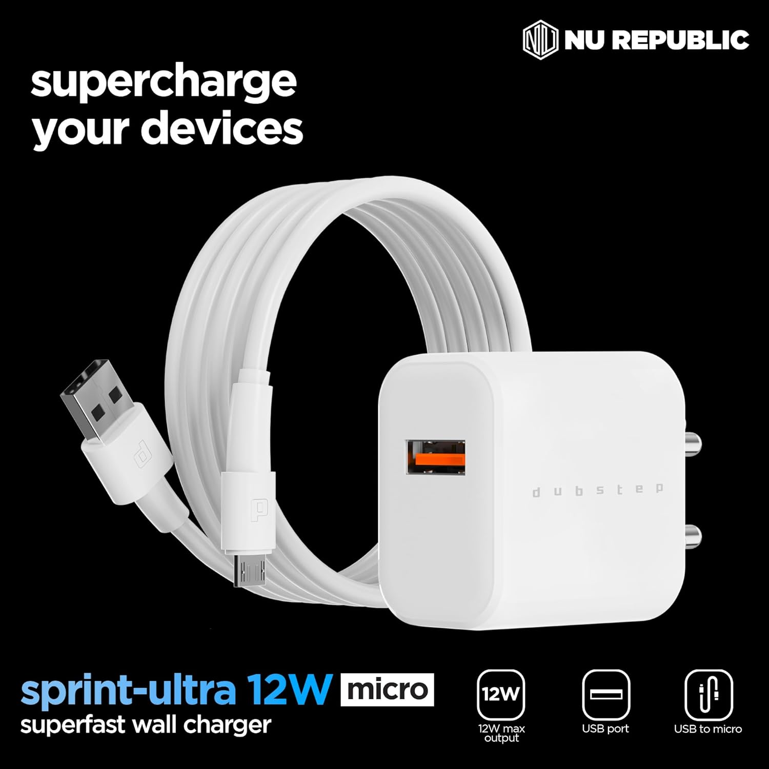 Supercharge your device with Dubstep Sprint 12W charger. Featuring super-fast 12W charging, built-in thermal power management, and Dubstep’s proprietary Powerblitz technology, Sprint 12W will take care of all your charging needs.