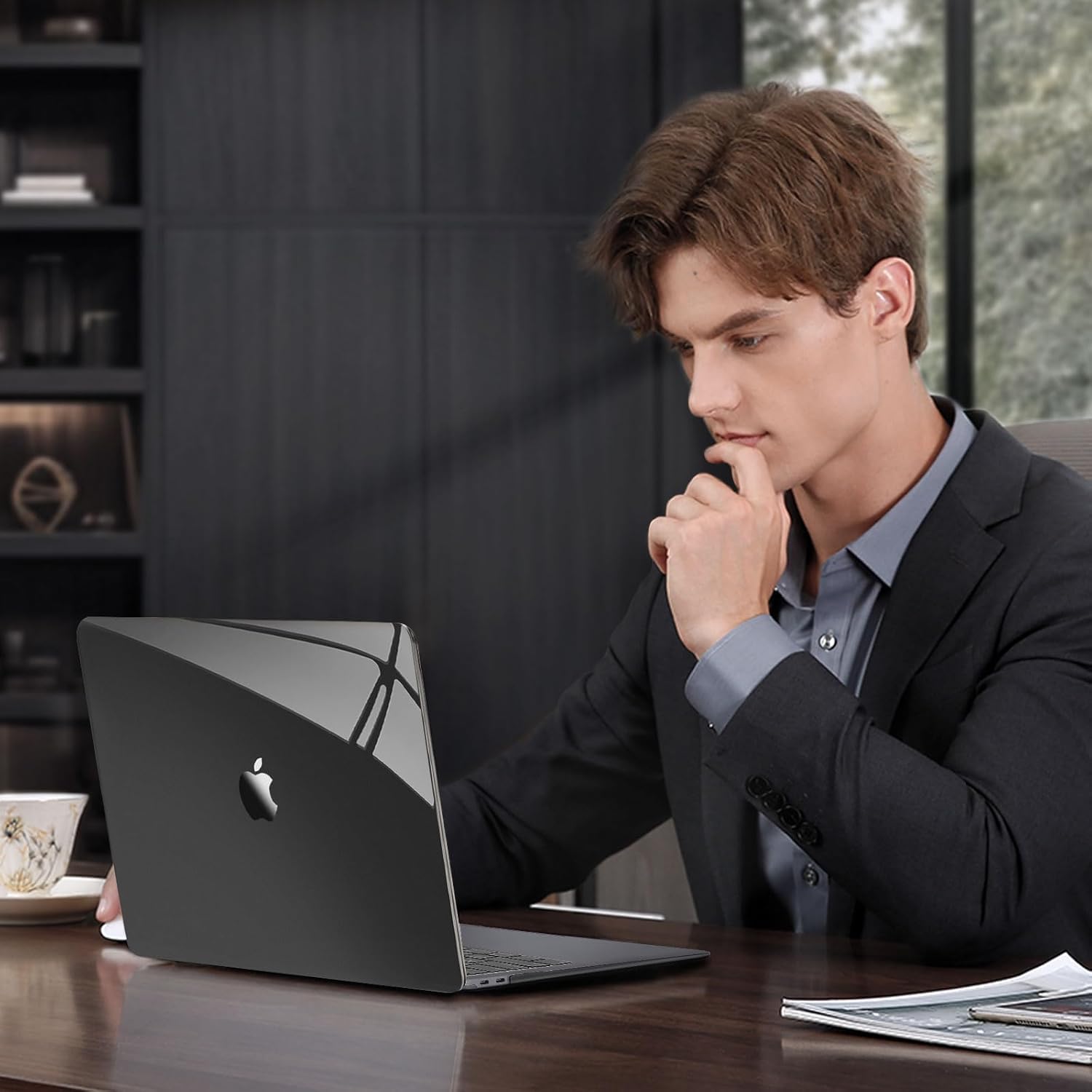 Transparent & Stylish Black Finish: The case showcases a minimalist, transparent grey design that highlights the original look of your MacBook Air, offering a sleek, modern aesthetic while providing robust protection without compromising on style.