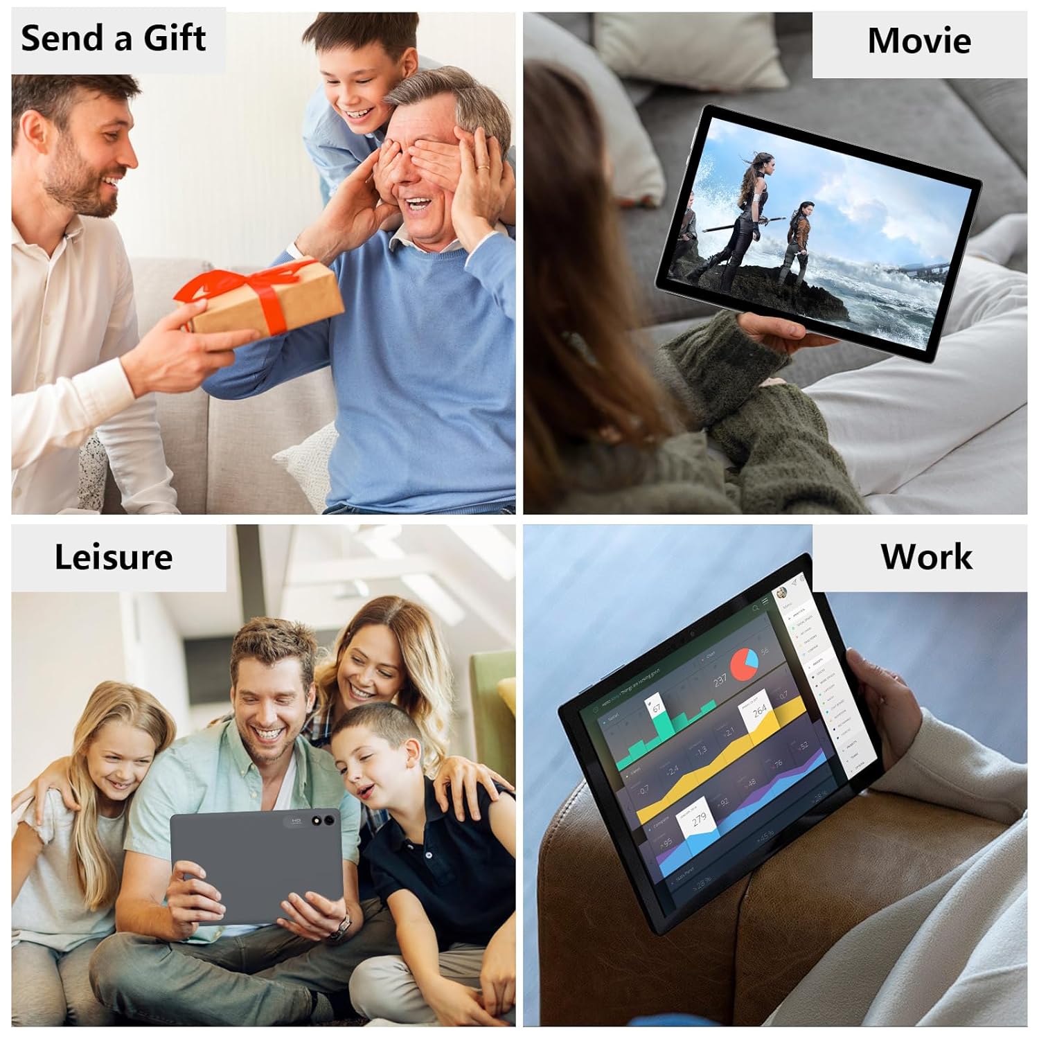 EXCELLENT GIFTS AND HASSLE-FREE AFTER SALES: The Android tablet comes with 90 days return cycle and 1 year warranty. If you have any questions, please feel free to contact us. This 10 inch tablet is beautifully packaged, simple and stylish, perfect for Valentine’s Day, Christmas, Halloween, birthday party for your lover, children, friends and family. Packing list: tablet x 1, charger x 1, manual x 1, leather case x 1, keyboard x 1, mouse x 1, pen x 1.