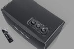 Three top-mounted knobs are designed for easy adjustment of treble, bass, and volume/input. Wireless remote control for easy control of the speaker from a distance.