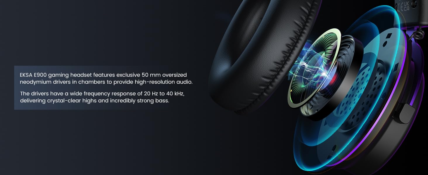Sound quality— If you need to hear more audio cues, The EKSA E900 Gaming Headset will be your choice. 50mm speaker drivers and 20Hz-20KHz frequency response give you a more expansive sound profile.