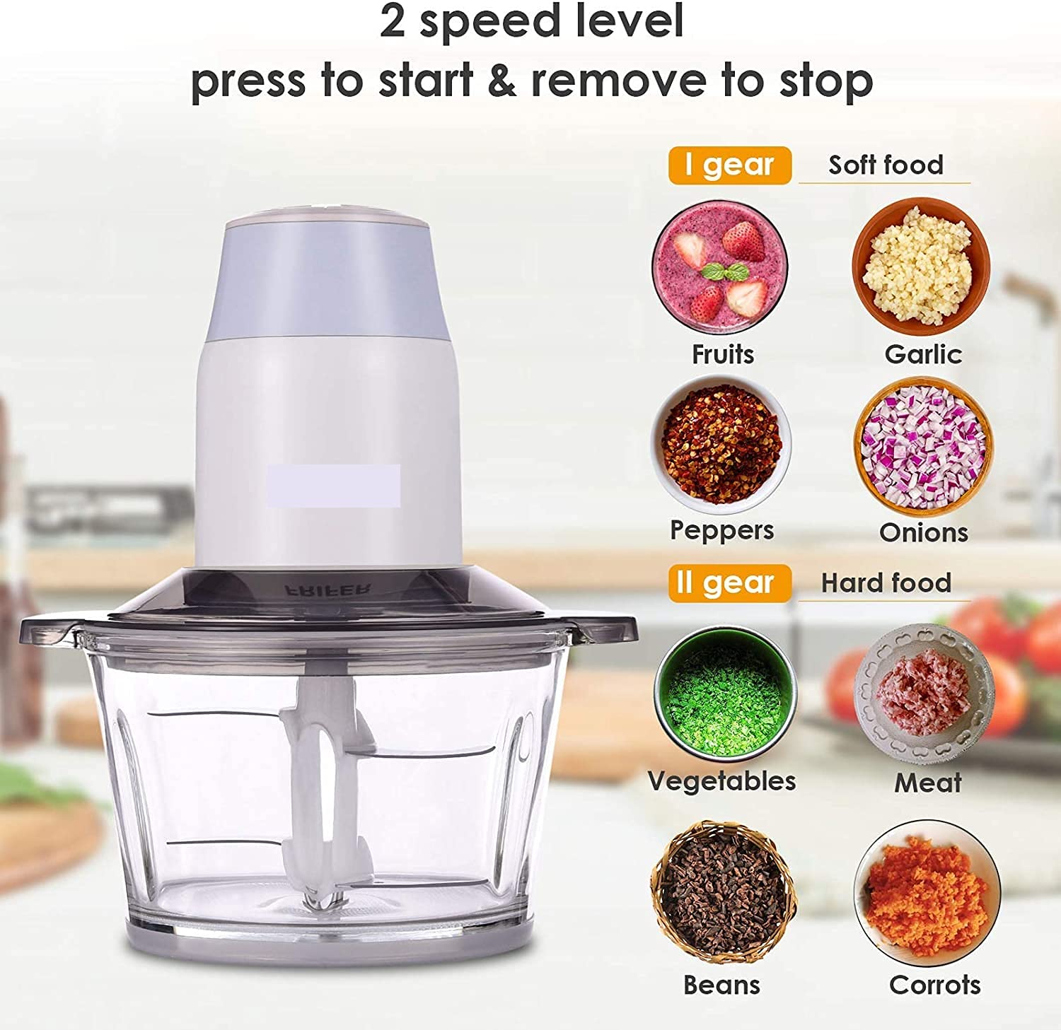 4 detachable stainless steel blades allow the upper and lower blades for maximum efficiency, chop vegetables, meats, nuts, garlic, onions, peppers in seconds, with speed and ease great for chopping, mixing, and pureeing.