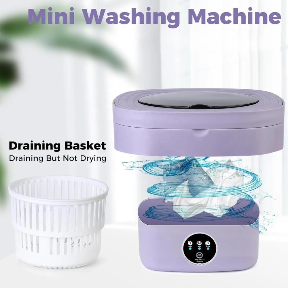 【𝐌𝐢𝐧𝐢 𝐖𝐚𝐬𝐡𝐢𝐧𝐠 𝐌𝐚𝐜𝐡𝐢𝐧𝐞】This compact washing machine is ideal for cleaning small garments such as socks, underwear, baby clothes, swimwear, and individual t-shirts, offering an efficient solution for delicate laundry. Its small capacity makes it unsuitable for bulky items like jeans, long skirts, and bathrobes. Perfect for people with limited laundry needs, it provides a simple, gentle washing solution for everyday small items without taking up too much space or energy.