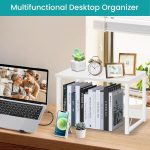 Besides function as printer stand at workplace, this versatile organizer shelf can be placed on tabletop displaying books, files, potted plants, cosmetics; put in cabinet or on countertop as divider shelf to organize spices, plates and bowls. It could be used not only as a printer stand, but also a bookshelf, nightstand, coffestand, side table, etc. It can also be widely used in the kitchen to arrange condiment jars, kitchenware, plates, dishes. When he appears in your office or study and other workplace, it can store printers, scanners, and files. ELITEROO Double Tier Desktop Shelves Printer Stand Our desktop stand is built with a double tier design and can be used as a printer stand, book shelf, storage shelf, plant pot tray and so on. It is ideal for both home and office use with its neat and modern appearance.