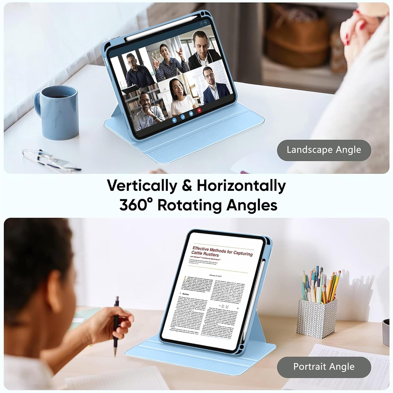 【Multiple Device Position】You can use your iPad with the vertical stand or horizontal stand as per your convenience. with this feature, you can now easily use the case in portrait mode for face time, browsing or mails and use it in landscape mode for viewing photos, movies & presentation.