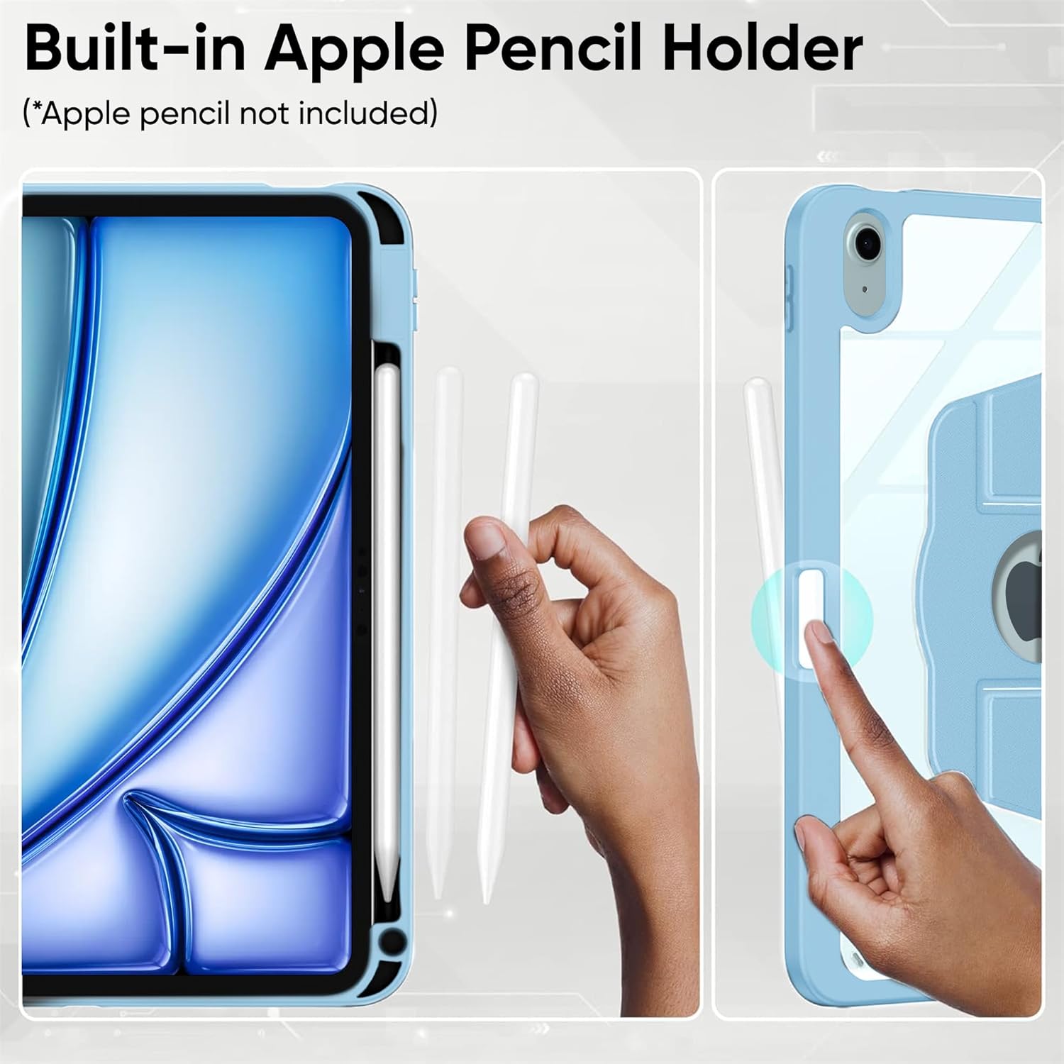 【Built in Pencil Holder】Our iPad case built in Apple Pencil holder, support Apple Pencil 2nd Generation or most sizes of pencils on the market, convenient to charge your pencil in the pencil holder, and avoid the losing or breaking your pencil (Note: Apple Pencil is NOT included).
