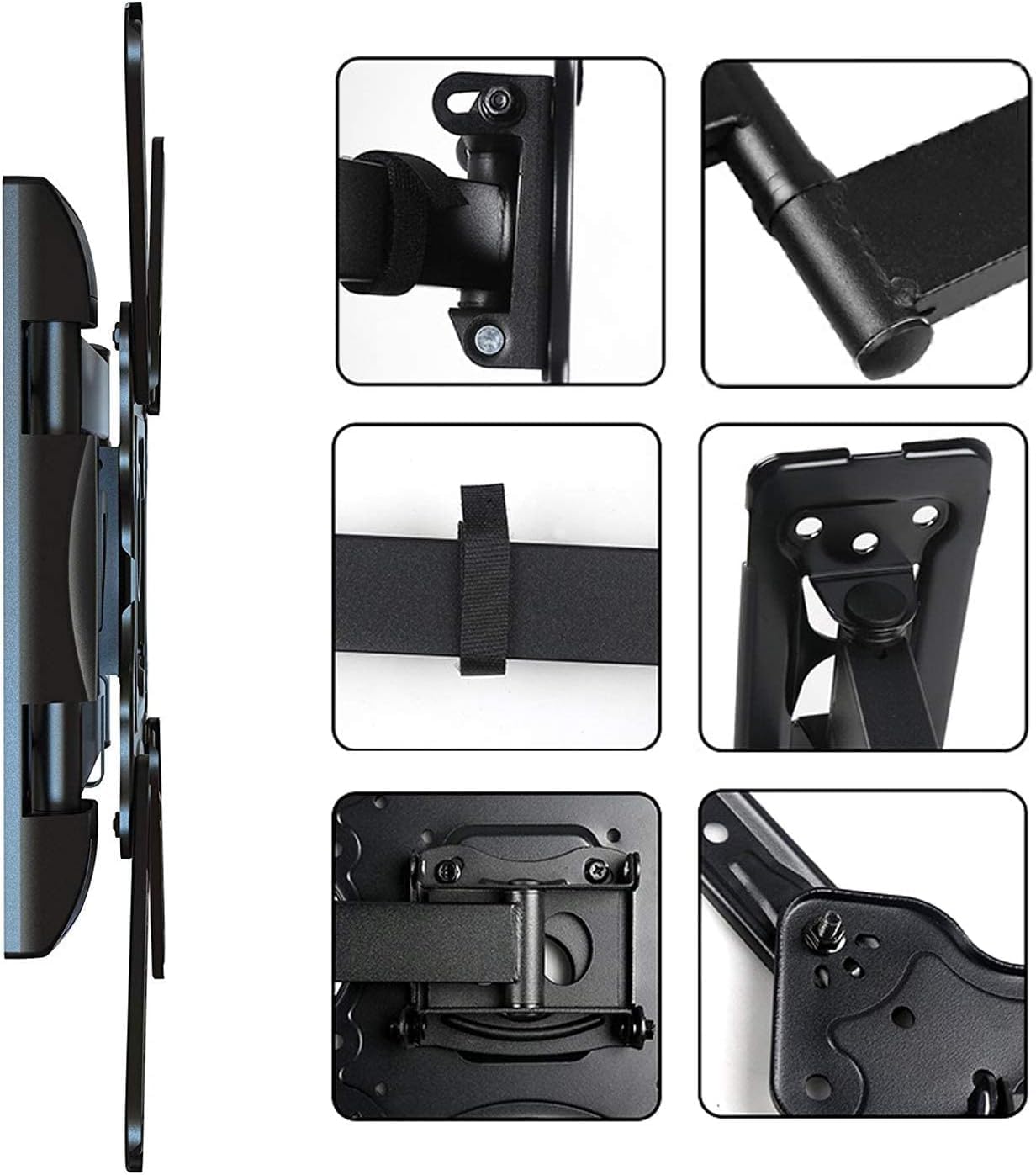 Full Motion Swivel and Tilt: This TV wall mount bracket offers full motion capability, allowing you to swivel your TV left and right for optimal viewing angles. It also provides tilt adjustment to angle the screen up or down, reducing glare and providing a comfortable viewing experience from various seating positions.
