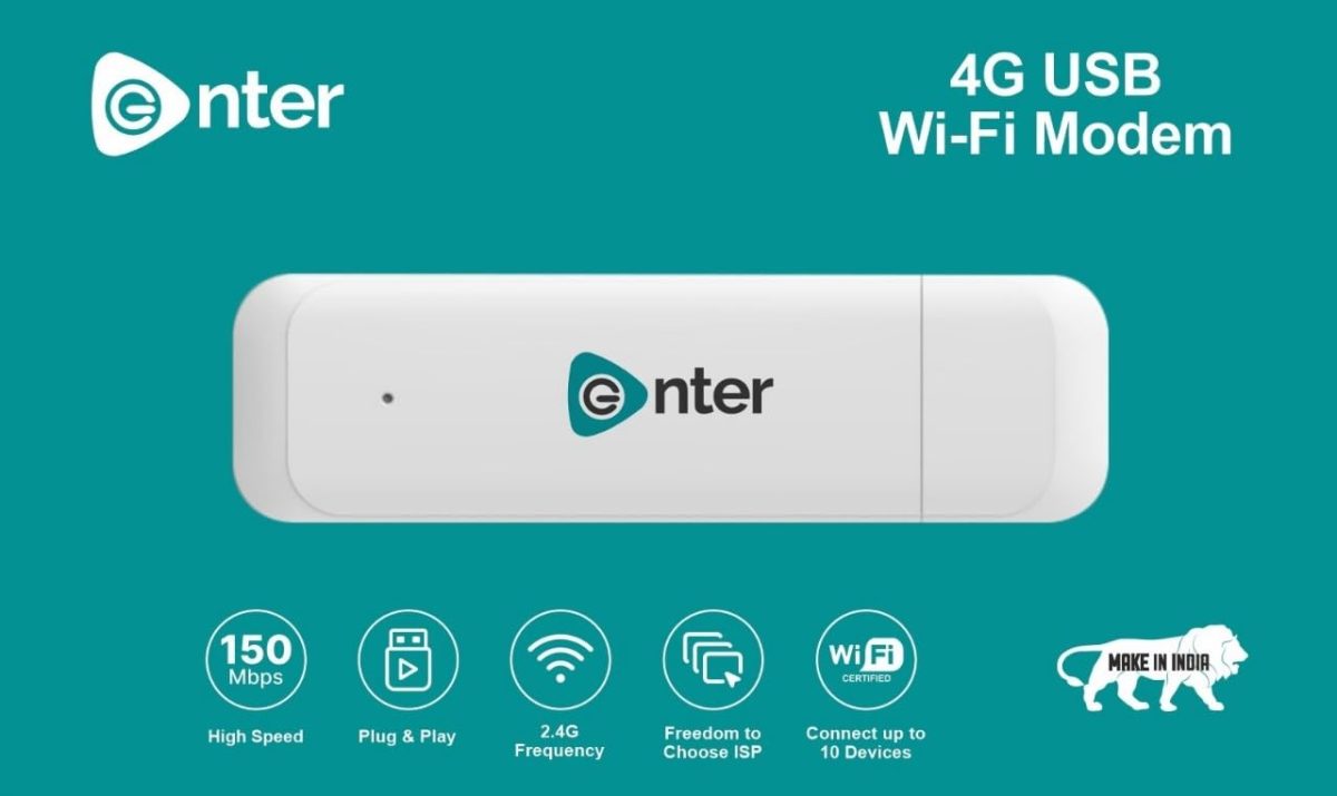 Be the first to review “Enter ENP-E-4GDI 4G WiFi USB Dongle Stick with All Sim Network Support, Plug&Play Setup Connects Upto 10 Devices Compatible with Windows 11/10/7/8/8.1/Xp/Mac Os 10.9-10.15 Linux Kernel, (White)”