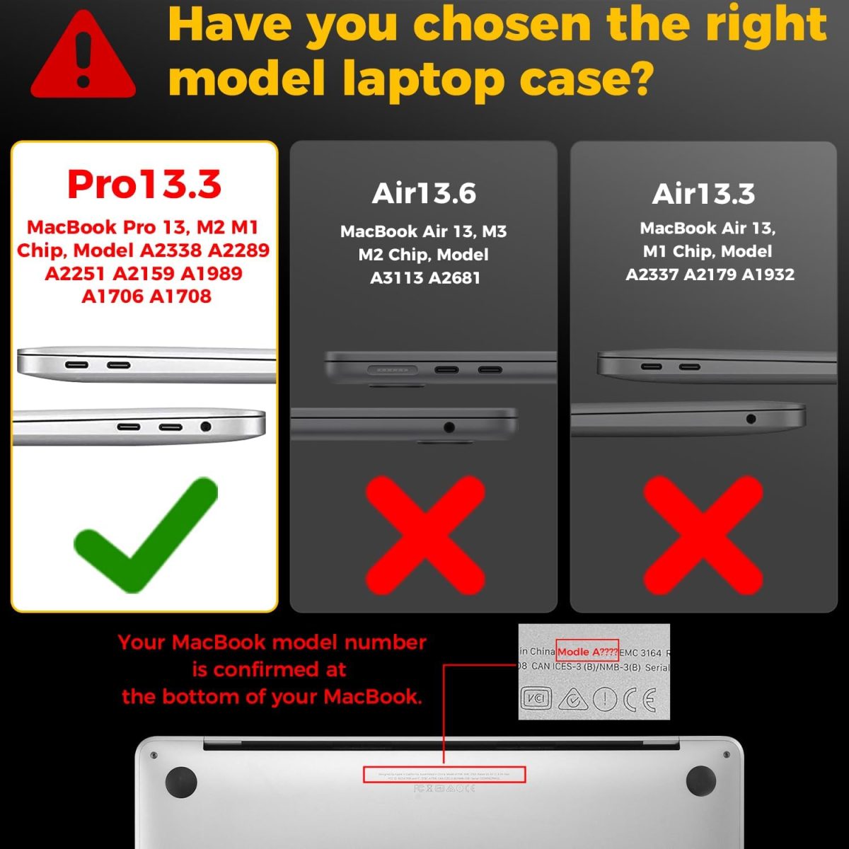 ✔️ Only compatible with New𝐌𝐚𝐜𝐛𝐨𝐨𝐤 𝐏𝐫𝐨 𝟏𝟑 𝐢𝐧𝐜𝐡(Model number: 𝐌𝟏 / 𝐌𝟐 𝐀𝟐𝟑𝟑𝟖 𝐀𝟐𝟐𝟓𝟏 𝐀𝟐𝟐𝟖𝟗 𝐀𝟐𝟏𝟓𝟗 𝐀𝟏𝟗𝟖𝟗 𝐀𝟏𝟕𝟎𝟔,released between 𝟐𝟎𝟏𝟕 𝟐𝟎𝟏𝟖 𝟐𝟎𝟏𝟗 𝟐𝟎𝟐𝟎 𝟐𝟎𝟐𝟏 𝟐𝟎𝟐𝟐 𝟐𝟎𝟐𝟑 𝟐𝟎𝟐𝟒). Please check the Macbook model “𝐀𝐗𝐗𝐗𝐗” on the back before purchase