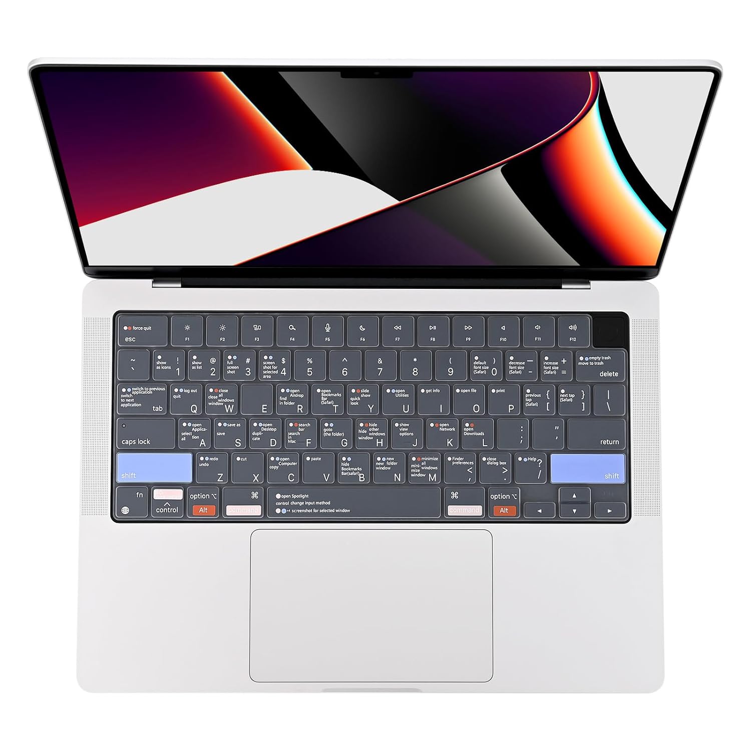 EooCoo Keyboard Cover Skin Protector with MAC OS Shortcut Keys 2025-2021 MacBook Pro 14/16 M4 M3 M2 M1 A3112 A3185 A3401 A3403 A3186 A2442,Air 13.6/15 M4 M3 M2 A3240 A3113 A2681 A3241 A3114 – Silicone