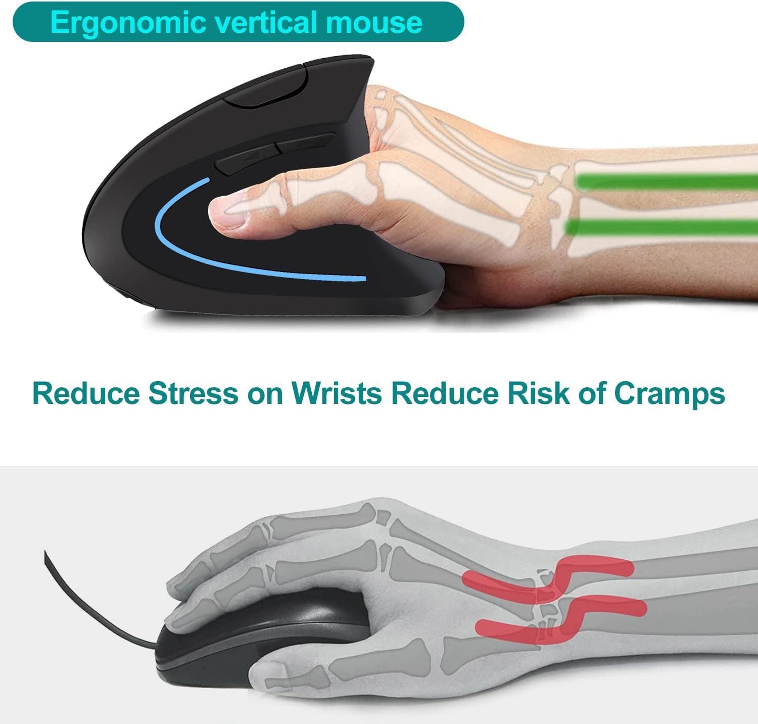 【Ergonomic Design】Ergonomic vertical mouse promotes a neutral handshake position for the right hand, reducing wrist and arm pressure for lasting comfort. Optical tracking technology with 1000/1200/1600 DPI resolution ensures smooth and precise tracking on various surfaces.