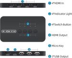 Button Switch & Wired Remote – Our USB HDMI Switch Box has two switching methods, you can switch PCs by pressing the panel buttons, or you can switch PCs by using the wired remote control without getting up from your seat. Its LED lights can indicate active PC.