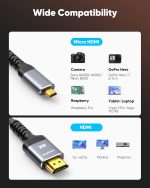 【Durable and portable】: With a durable nylon braided and a compact design, this 4K micro HDMI cable 2.0 is built to withstand everyday wear and tear and is easy to store and transport. Whether you’re at home or on the go, this cable is a reliable and convenient solution for connecting your micro HDMI-enabled devices to HDMI 2.0 displays.