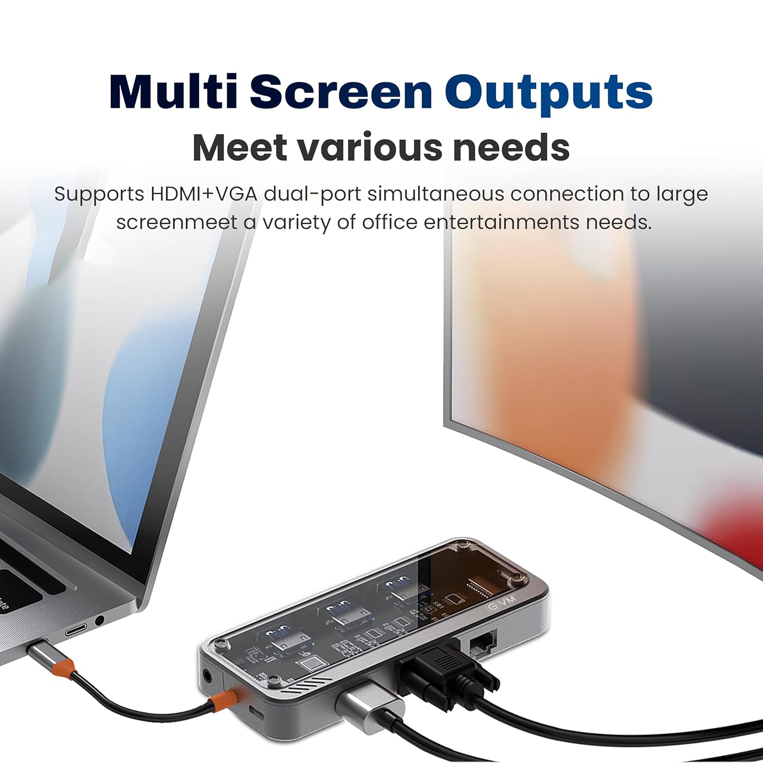 EVM 10-in-1 Type-C Hub Docking Station with 4K HDMI, VGA 1080P, PD 100W Charging, USB 3.0 5Gbps, USB 2.0, RJ45 Ethernet, SD/TF Card Reader, 3.5mm Audio Port, Compact Design, 1-Year Warranty