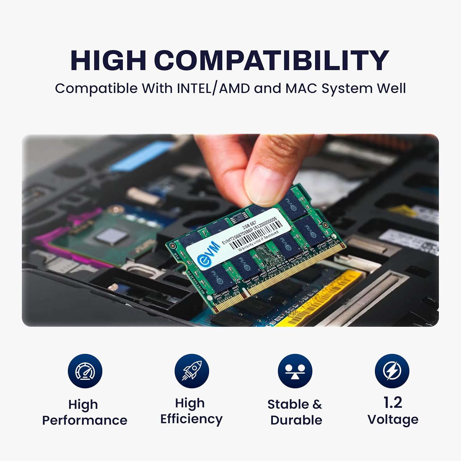 EVM 2GB DDR2 Laptop RAM 667MHz So-DIMM Memory – Boost Your Laptop’s Performance with Reliable and Efficient Memory Upgrade – 10 Year Warranty (EVMT2G6670S86P)