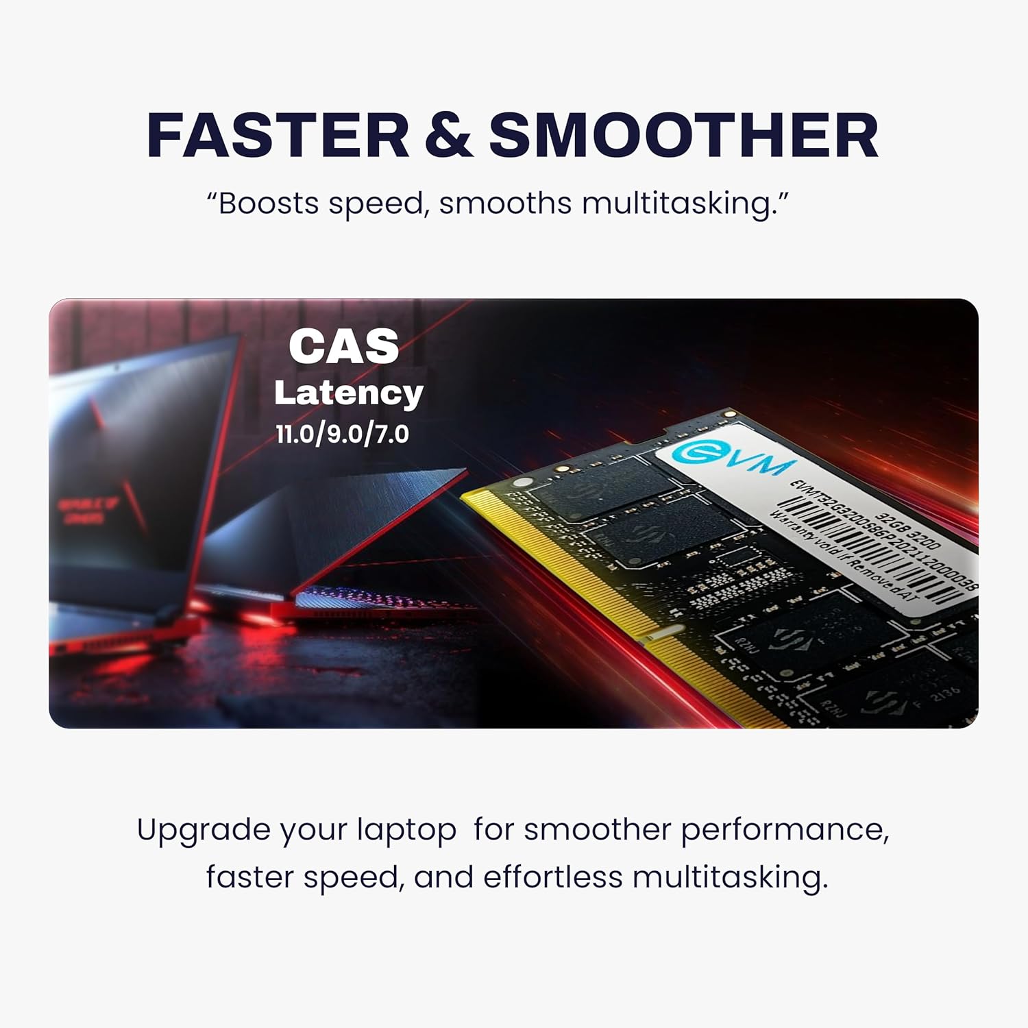 EVM 32GB DDR4 Laptop RAM 3200MHz – Unleash Your System’s Full Potential – Perfect for Gamers, Office Work, and More – 10 Years Warranty (EVMT32G3200S88P)