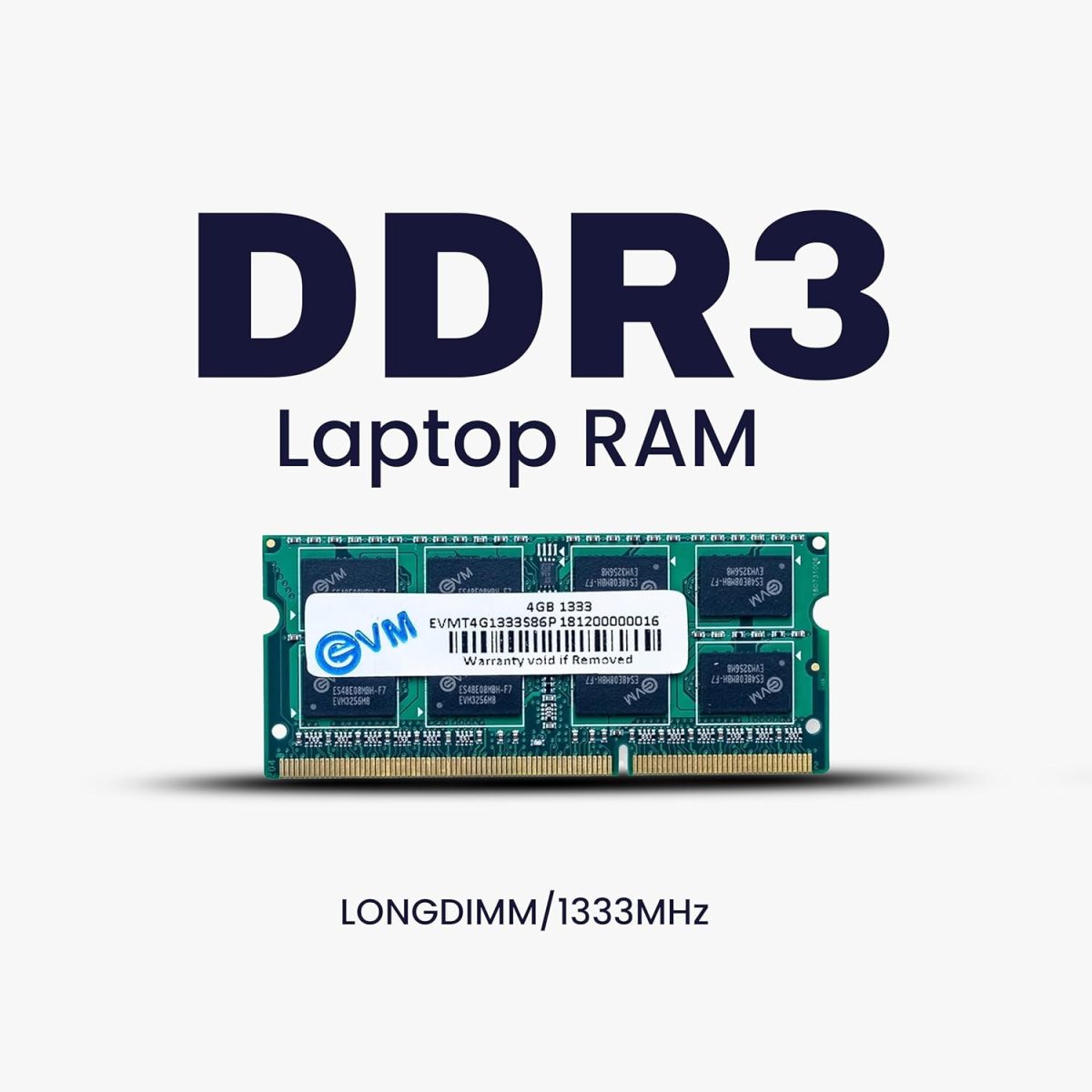 EVM 4GB DDR3 Laptop RAM 1333MHz So-DIMM Memory – Boost Laptop Speed and Performance with Low Latency and Durable Design – 10-Years Warranty (EVMT4G1333S86P)
