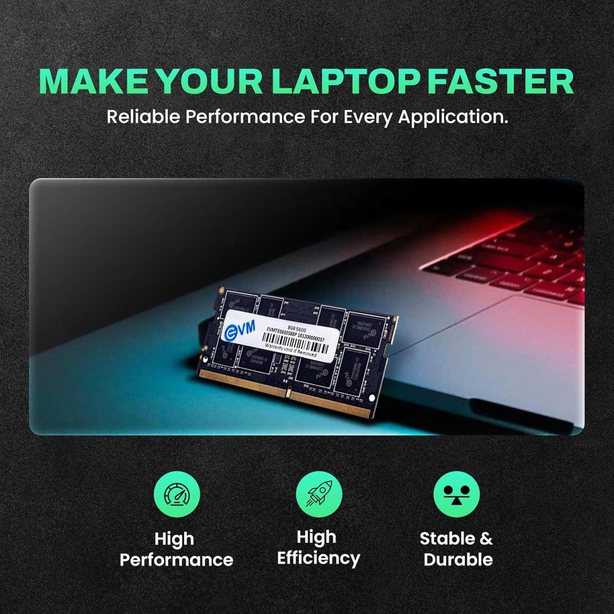EVM 8GB 5600 MHz High-Performance DDR5 Laptop RAM, Ultra-Fast Memory Upgrade, 288-Pin Long DIMM, 10-Year Warranty (EVMT8G5600U88P)