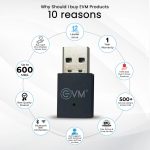 EVM EnWifi USB Bluetooth + Wireless Dongle Laptop and Desktop Wi-Fi Receiver,Comes with Advanced Security WPA/WPA2 encryption Standards – 1 Year Warranty (600MBPS)
