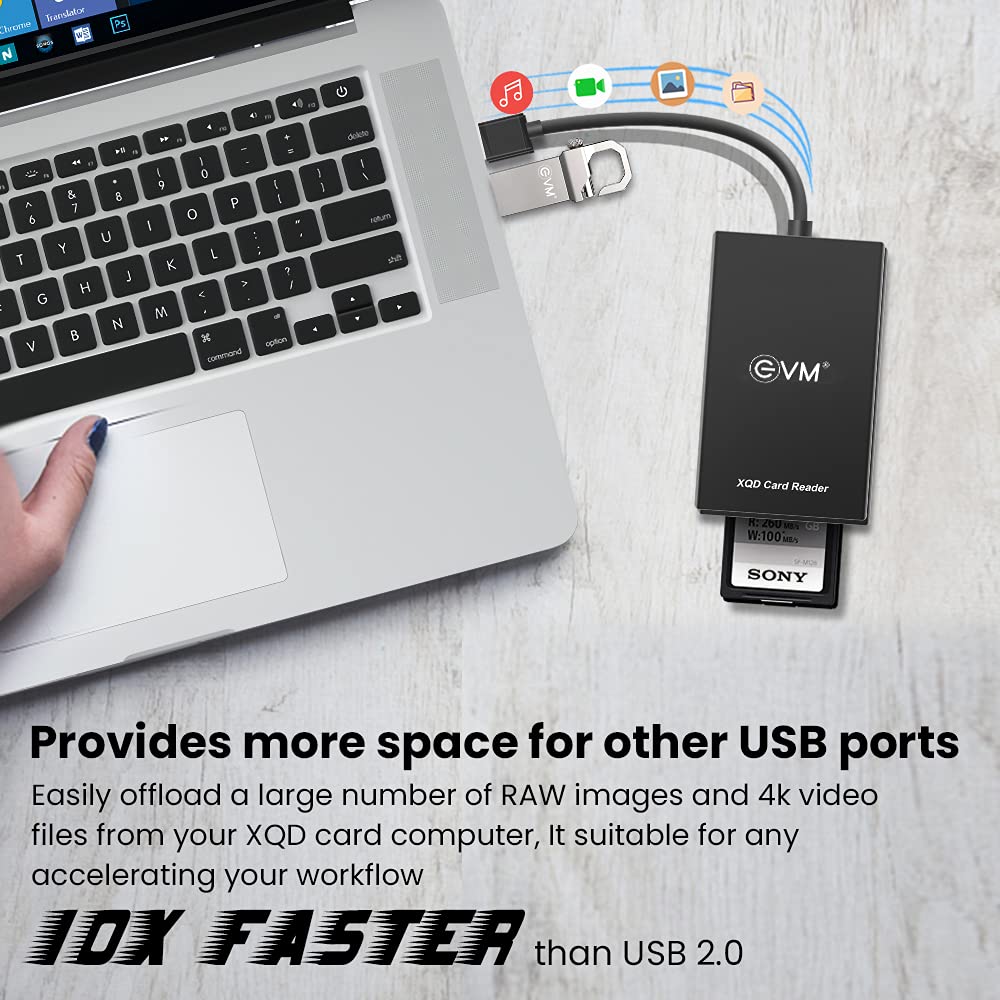 The upgraded version of this EVM USB 3.0 XQD reader perfectly supports XQD G-series and M-series card, Lexar 2933x, Lexar 1400x Mark cards, SD /SDHC/SDXC Series.