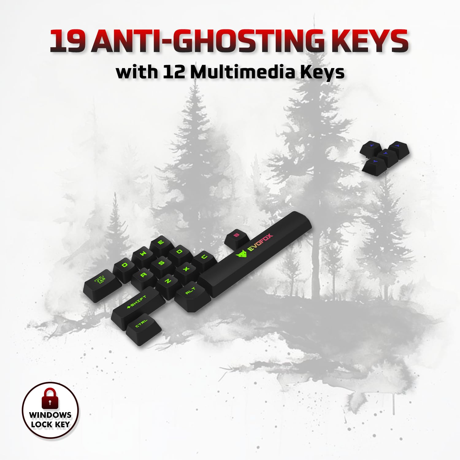 19 Keys Anti Ghosting makes sure accurate and reliable key presses, Especially when the combination of keys is used. The keys are