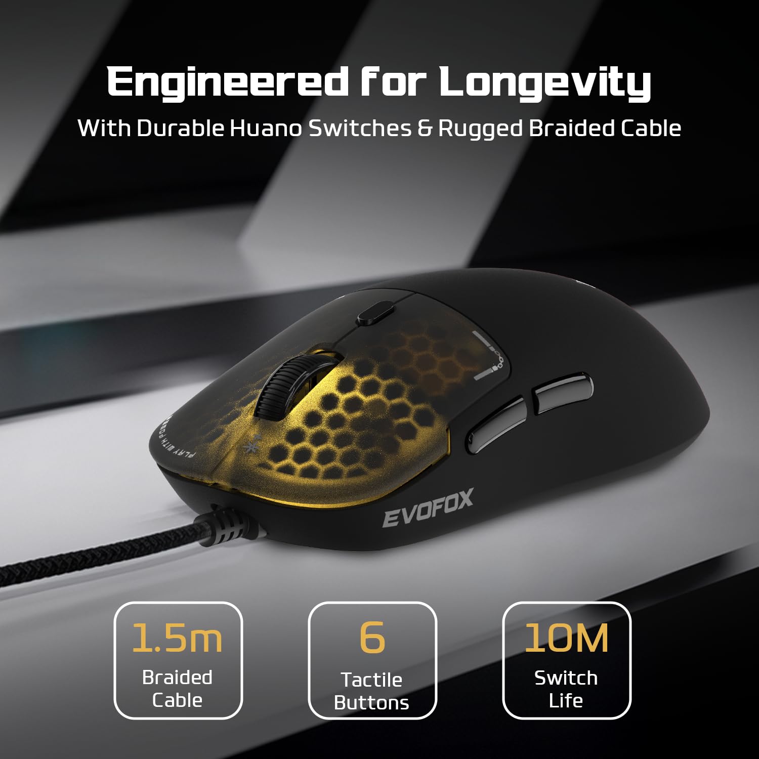 Experience durability with Huano switches rated for 10 million clicks. Designed for performance and tactile feedback, these switches ensure your EvoFox Phantom Air keeps up with your most demanding gameplay sessions.