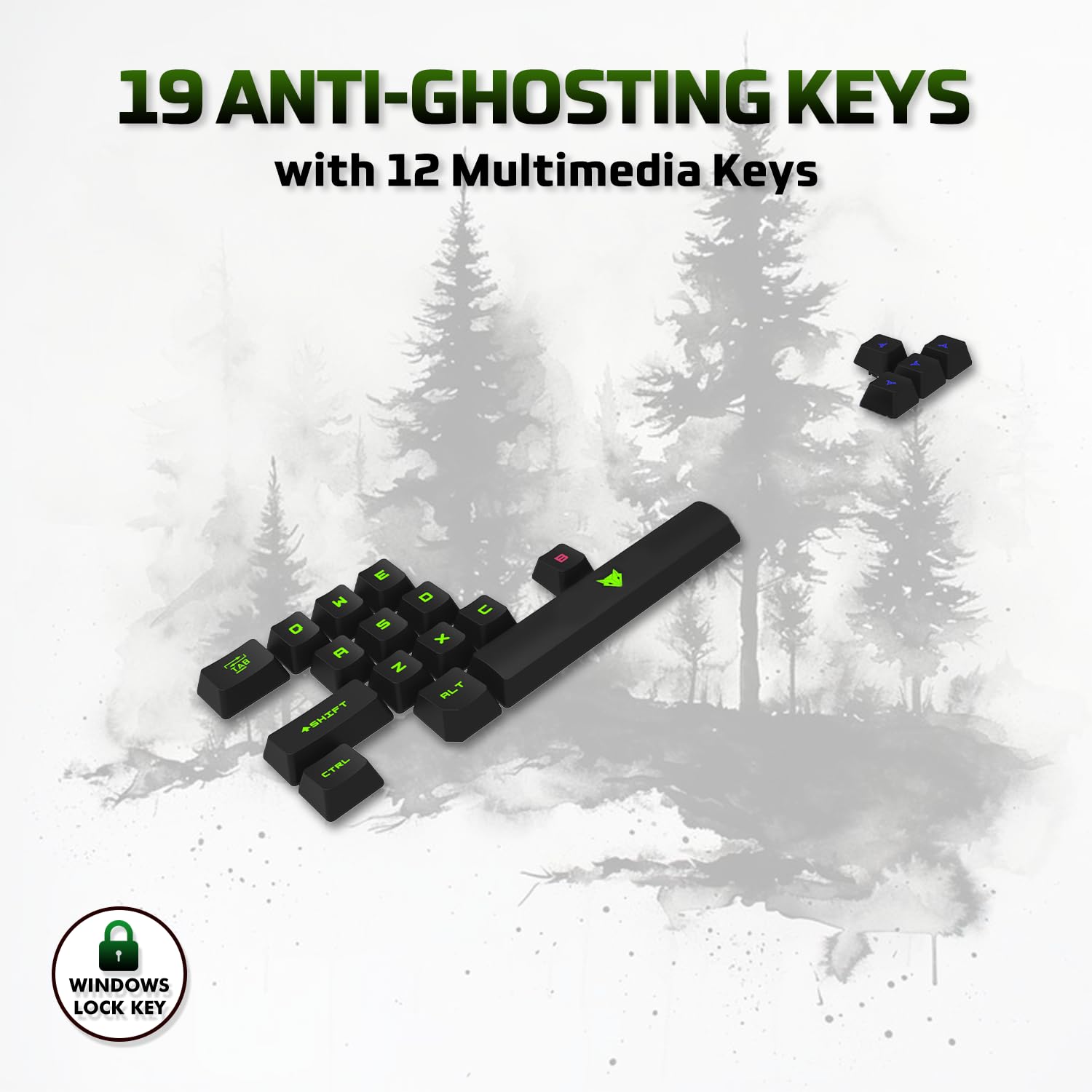 19 Keys Anti Ghosting makes sure accurate and reliable key presses, Especially when the combination of keys is used. The keys are