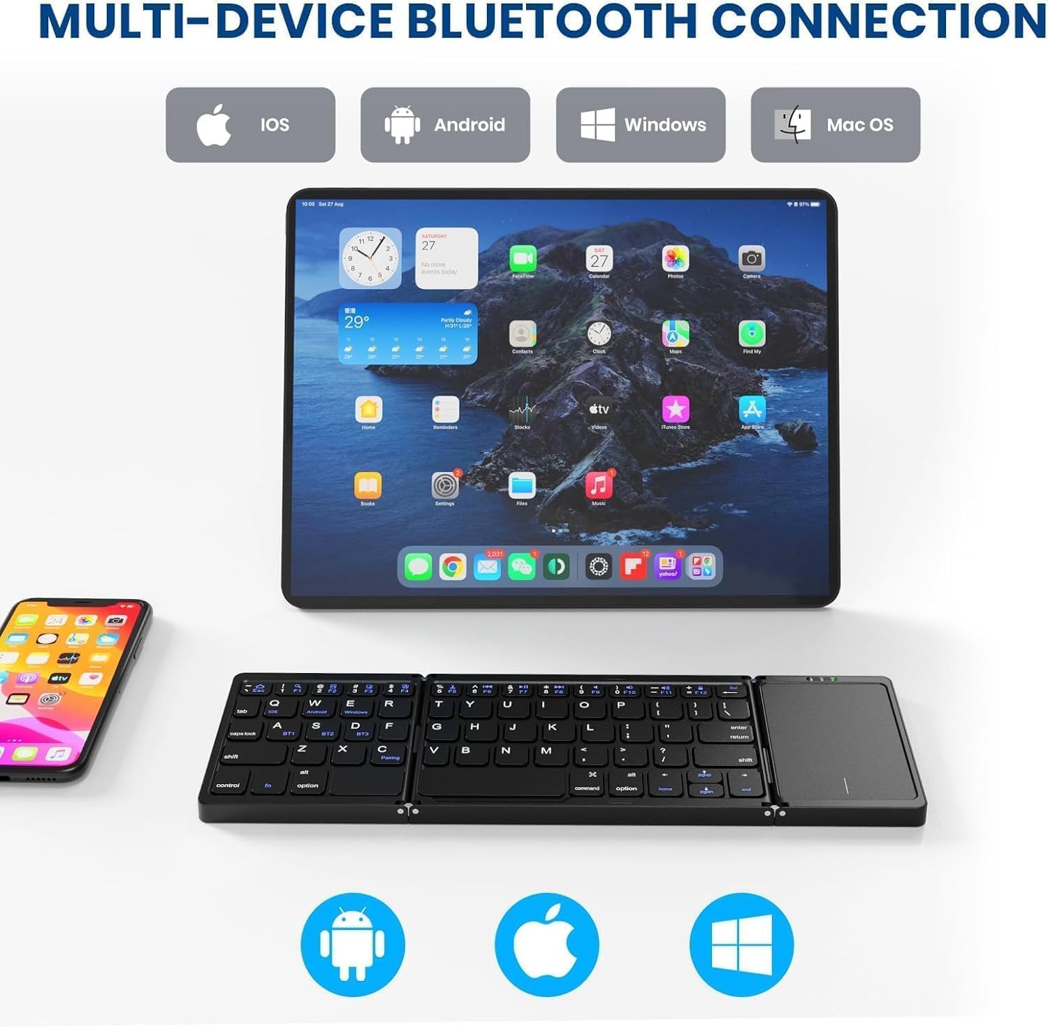 EXOMOON Foldable Bluetooth Keyboard with Touchpad Portable Wireless Keyboard Rechargeable Full Size Ultra Slim Pocket Folding Keyboard for Android Windows iOS Tablet & Laptop-Black