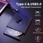 External CD/DVD Drive for Laptop – USB 3.0 Type-C Portable Player