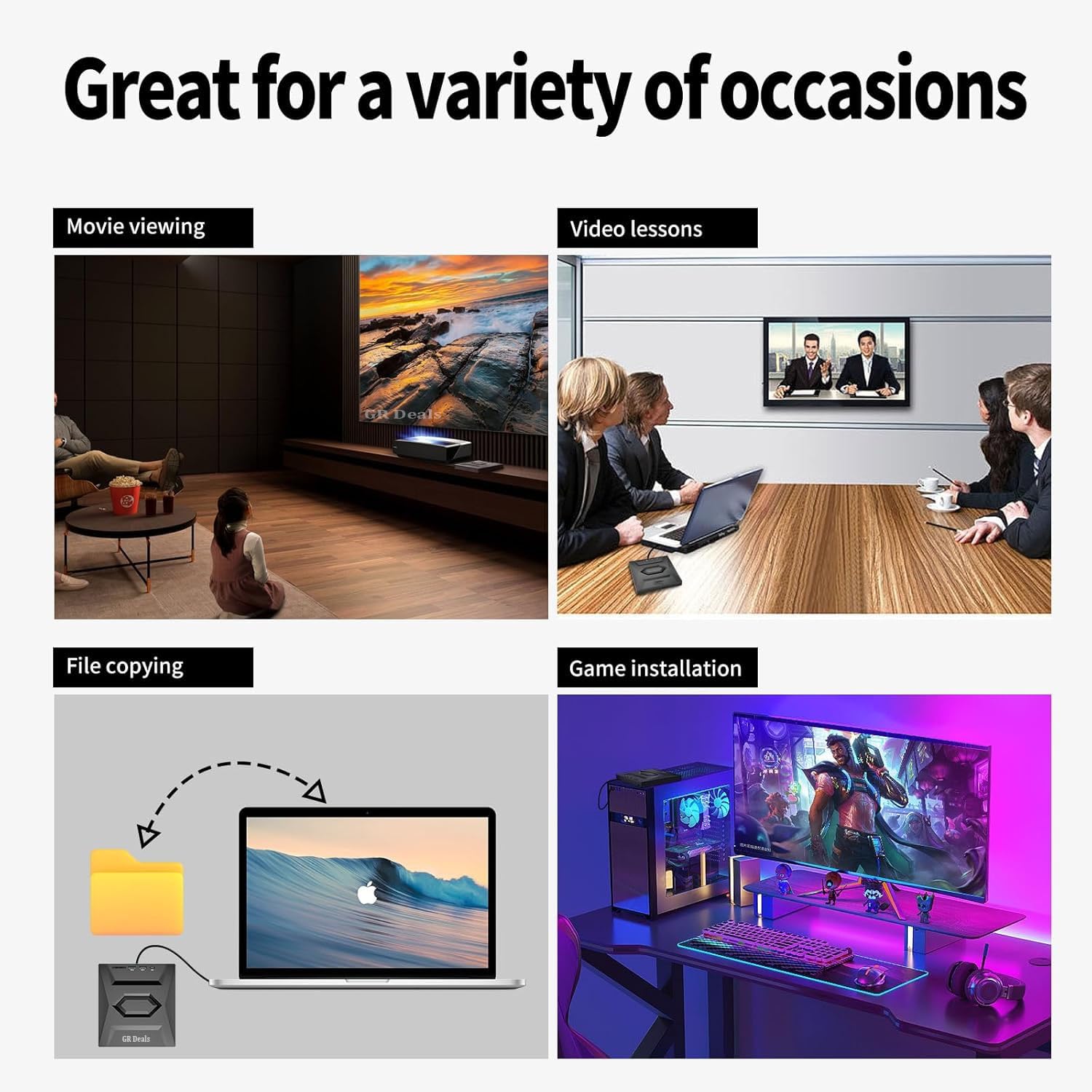 GR Deals is a driven and experienced manufacturer, specializing in optical drives and other computer accessories. We aim to provide useful technology, intelligent functionality and a simple user experience in order to make life easier for individuals