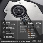 All Kinds of Disc – This dvd drive for laptop/cd is compatible with multiple discs (standard 120mm) including CD-ROM, CD-R, CD +/-RW, DVD-ROM, DVD-R, DVD+/-RW, DVD-R DL, VCD-ROM discs. Unlike other CD/DVD players, this usb cdrom drive external gives the disc more clearance inside the disc bay so no more ruined discs due to extra-thick disc label issues! For some cd/dvd players for laptop, sometimes the disc would skip off the top of the drive and the burning or reading process would be ruined.