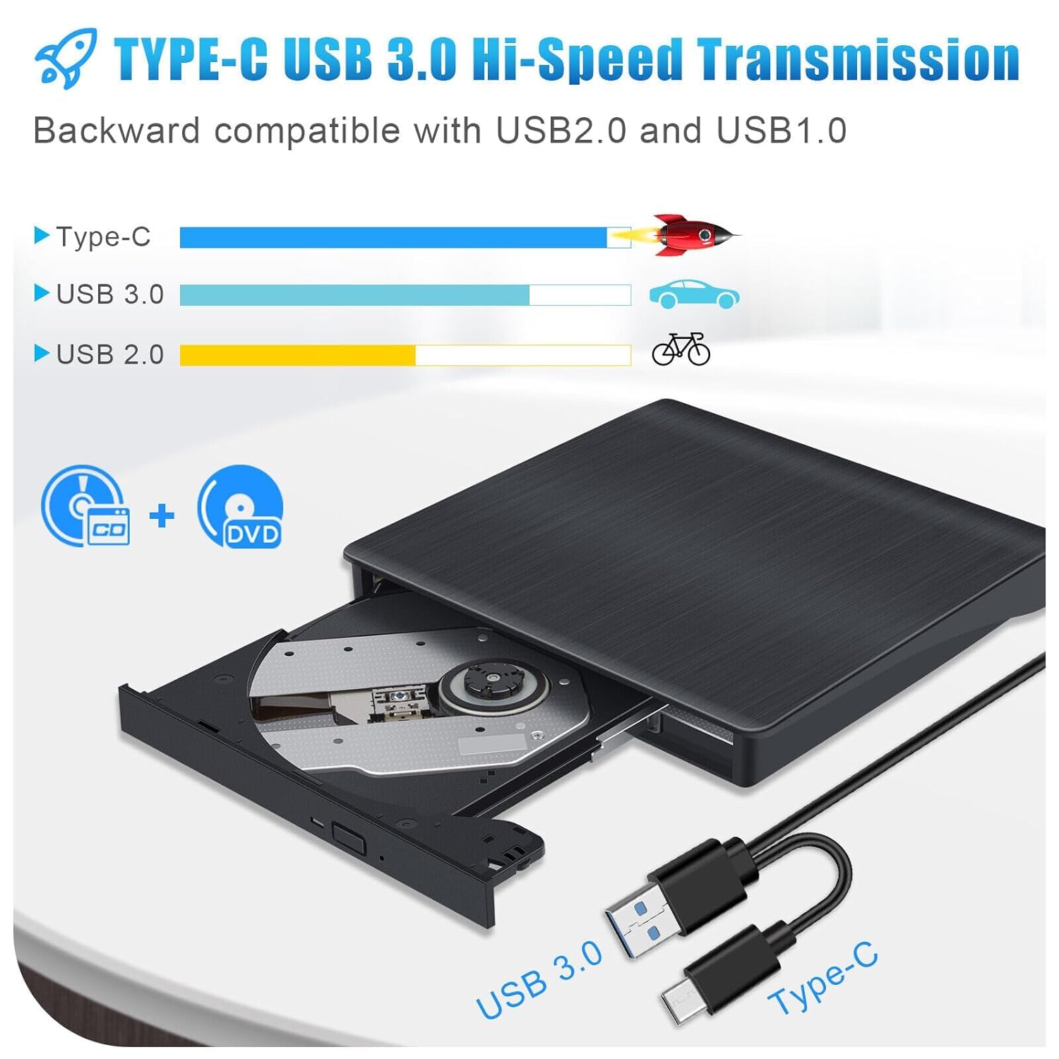 Don’t know if this external optical drive is compatible with your computer or not?Don’t worry! This external disk drive for laptop is widely compatible. No matter it is laptop, macbook, desktop, only if they are equipped with Windows OS, Mac OS, or Linux OS, this cd dvd external drive for laptop will show up on your computer!Once you plug this external dvd player for laptop into your computer, it will bring up your downloaded Media Player, select it, and from that point forward whatever disc you put in will automatically open through it. You download a Media Player program onto your computer if don’t already have one before you hook it up.With USB 3.0, this portable cd drive for laptop provides up to 5Gbps data transmission speed and enables you to enjoy movies and music without lag.