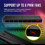 The fan hub can support up to 8 fans, including a total of 8 4-pin PWM ports and 8 ARGB ports for ARGB fans or ARGB devices.