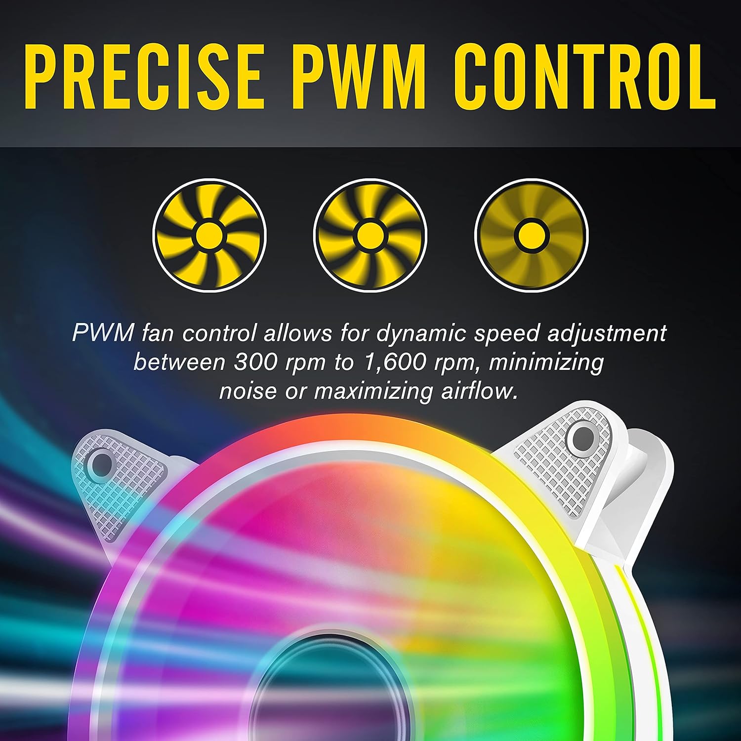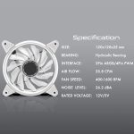 With 5V ARGB control- Fan colors can be set through the main board software controller, or RESET button control can be selected to connect, and flexible and changeable lighting effects such as rainbow, flashing, monochrome, breathing can be selected, Sync with 5V RGB enabled motherboards to customize lighting effect