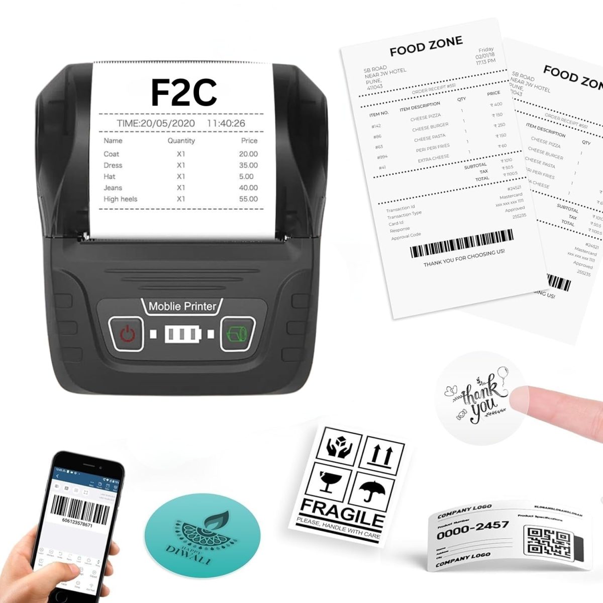 F2C 2-in-1 Bluetooth Label + Receipt Printer with 2600mAh Battery | Compatible with Android, iOS & Windows | Portable Mini POS Printer for Billing, Retail & Shipping