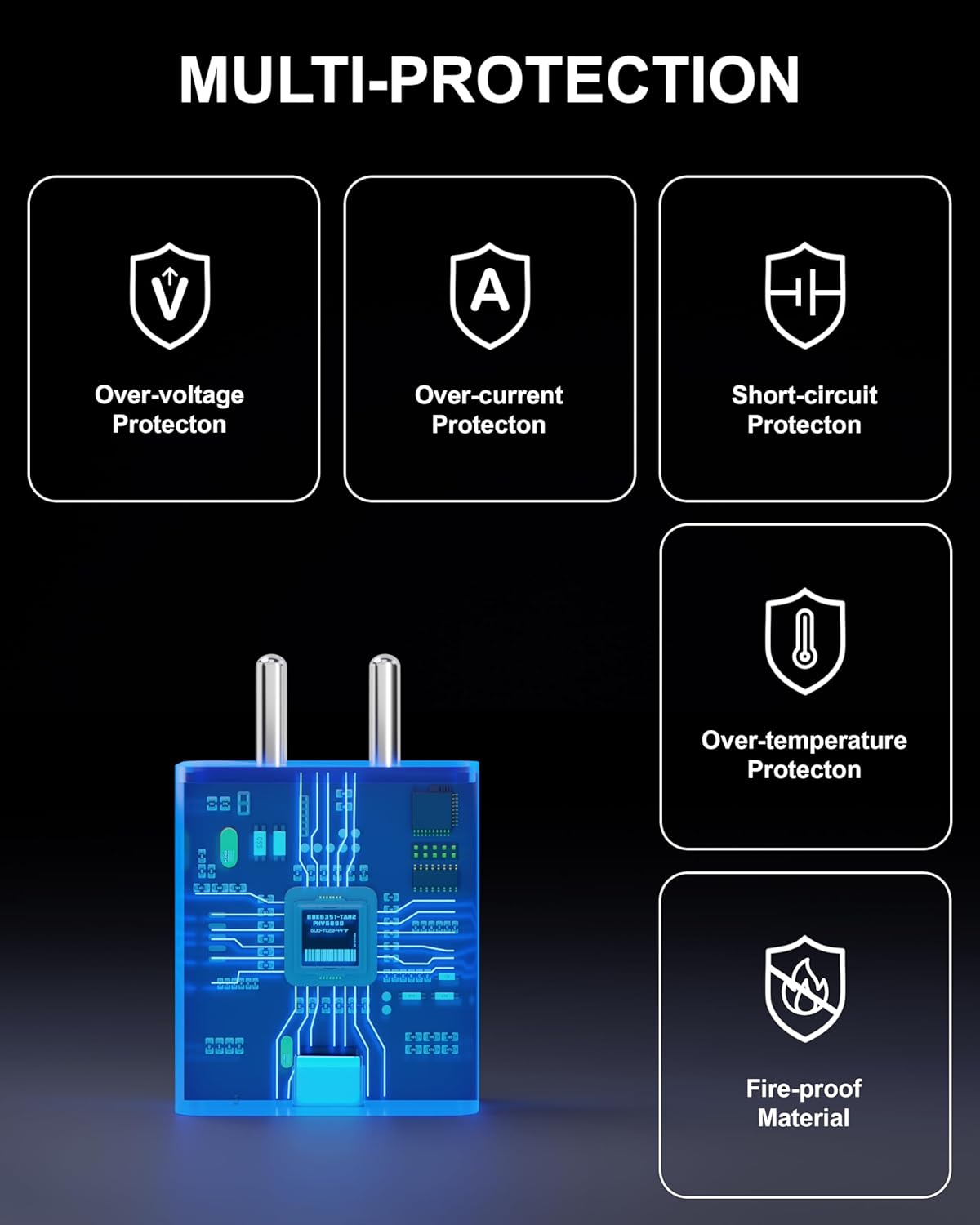 ▶CERTIFIED SAFETY: BIS-certified, Suitable for Indian and World electrical standards, with a built-in smart chip to automatically match the current required by devices. An intelligent temperature control system provides temperature control, surge protection, and short-circuit prevention, preventing your phone from being charged and overheating. Maximize the life of your battery. The shell is made of high-quality ABS anti-fire material to ensure it is 100% safe for family members.