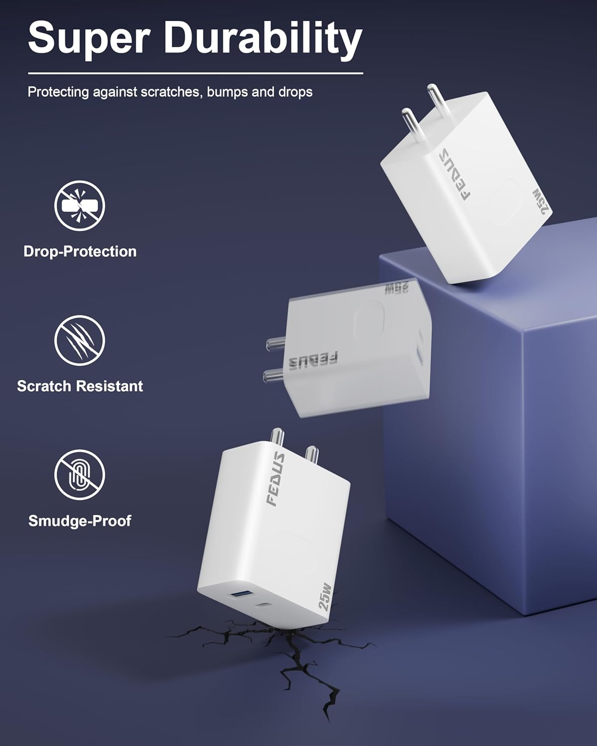 Be the first to review “FEDUS 25W Fast Charging Type-C Charger with Cable Compatible with Samsung Galaxy S25/S25 Plus Ultra/S24+/S23 Ultra (25W PD, 25-WATT), White”