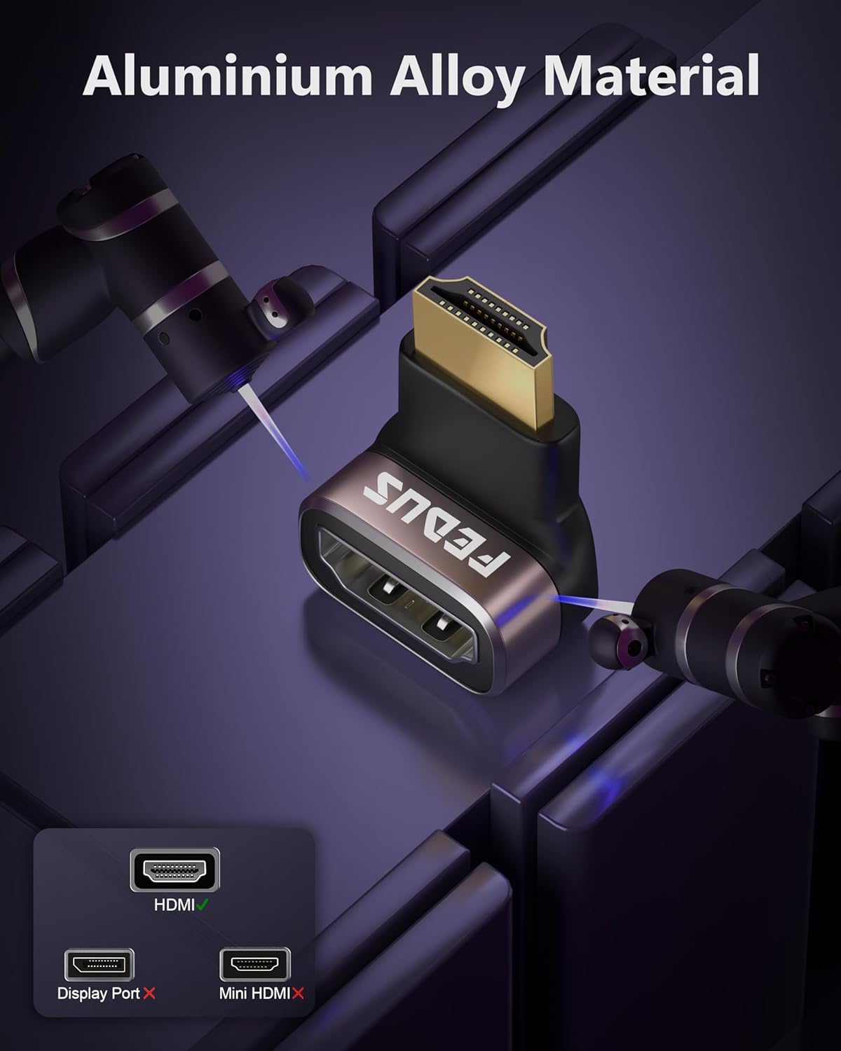 ▶8K HDMI ADAPTER WITHINNOVATIVE HDMI 2.1 FEATURES: FEDUS HDMI male-to-female adapter to connect devices at a resolution of up to 8K@ 60Hz and 4K@ 120Hz, with a backward compatible 2K and 1080P resolution. Our HDMI coupler supports ALLM(Auto Low Latency Mode) and VRR (Variable Refresh Rate), HDR, eARC, HDCP 2.3, Dynamic HDR, Dolby Vision, HD Dolby 7.1, Dolby Atmos and 3D video, bringing you a cinematic immersive visual experience and enhances every moment values for depth, detail, brightness.