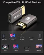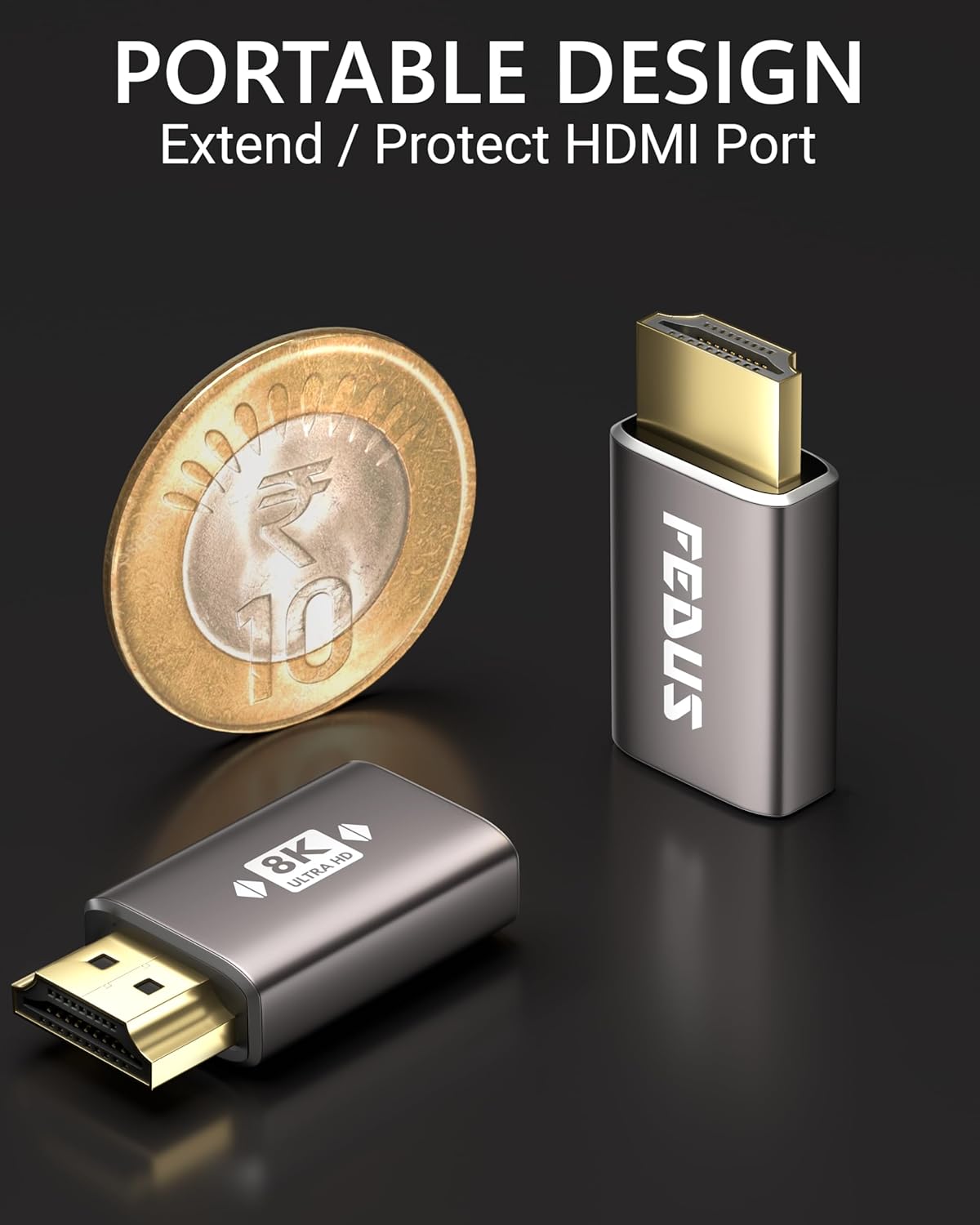 ▶PERFECTLY PROTECT THE HDMI PORT: The FEDUS male to female hdmi adapter connector perfectly protect the HDMI port of your valuable device, It perfectly protects your cables from bending damage or breakage. Also, it reduces the stress on the ports of your valuable devices. ▶8K HDMI ADAPTER WITHINNOVATIVE HDMI 2.1 FEATURES: FEDUS HDMI male-to-female adapter to connect devices at a resolution of up to 8K@ 60Hz and 4K@ 120Hz, with a backward compatible 2K and 1080P resolution. Our HDMI coupler supports ALLM(Auto Low Latency Mode) and VRR (Variable Refresh Rate), HDR, eARC, HDCP 2.3, Dynamic HDR, Dolby Vision, HD Dolby 7.1, Dolby Atmos and 3D video, bringing you a cinematic immersive visual experience and enhances every moment values for depth, detail, brightness. ▶UNIQUE AND RELIABLE DESIGN: The HDMI adapter Features the latest ABS material, premium aluminium shells for faster heat dissipation, and gold-plated connectors that have been tested over 10,000+ times: the superior construction and a non-slip surface to provide reliable signal transmission and easy installation. Provide the best signal transmission for a better viewing experience. Safer and more durable. Small and easy to carry, plug and play. ▶FULL COMPATIBILITY: Compatible with any standard HDMI devices, such as HDTV, monitor, projector, Blu-ray player, laptop, HD TV, TV stick, Roku streaming media player, Chromecast, Blu-ray DVD player Receiver, satellite TV box, AVR receiver, Apple TV, HD cable box, Xbox360, Xbox One S, PS 3/4/5, PC, RTX Graphics. It can be connected to the HDMI port behind the monitor with almost no gaps, which is the perfect solution for home entertainment systems and work environments. ▶LESS INTERFERENCE: 24AWG copper wire with triple tin shielding reduces the probability of interference with wireless services such as Wi-Fi, proving you an amazing experience. And it support Audio Return Channel (ARC), HDMI Ethernet Channel (HEC), 32 channel audio, Dolby True audio. ▶LIFETIME FRIENDLY CUSTOMER SERVICE: 12-month worry-free warranty. Each HDMI Extender undergoes rigorous testing to ensure a secure connection with exceptional speed and reliability. If, for any reason, you are not satisfied with the item, you will get a replacement.