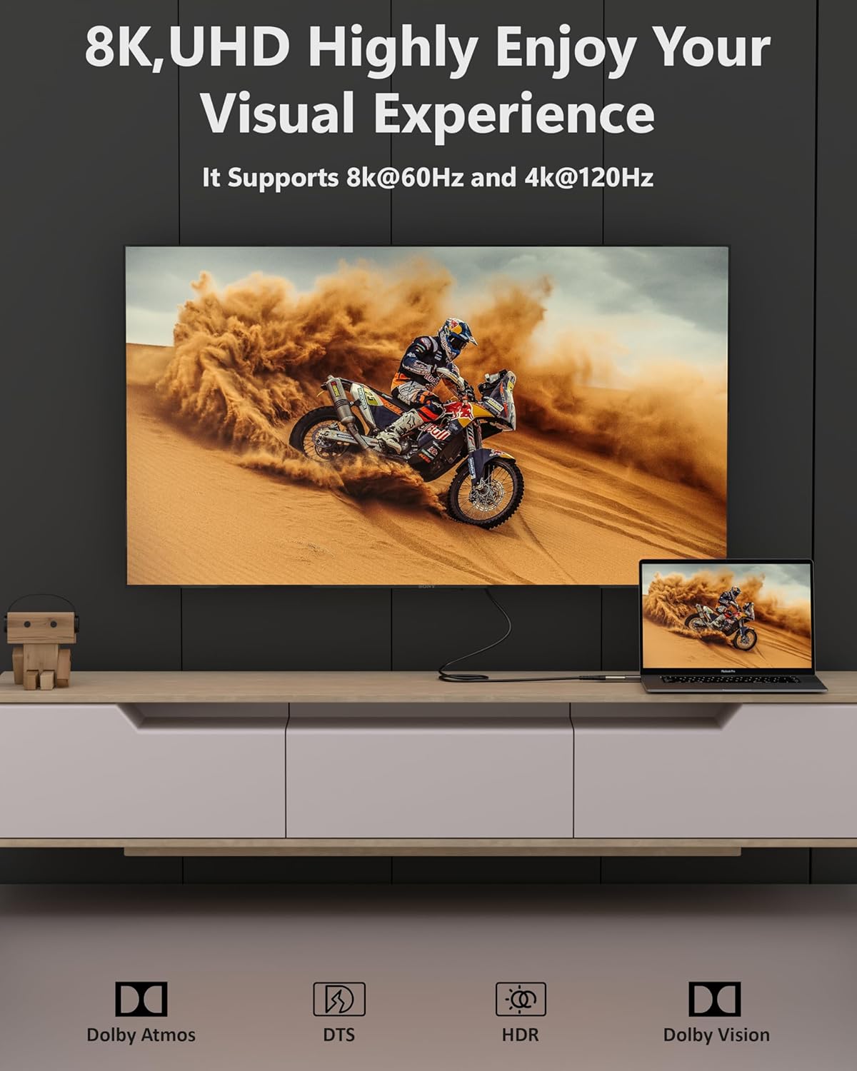 When you use the USB4 Cable, it can support 8K@60Hz HD video & audio output, and it make your game or office have a more high-definition and excellent experience.