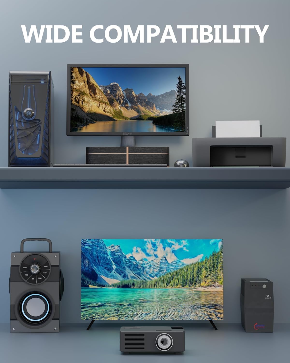 REPLACEMENT AC POWER – Length 1.8 Metre / 5 Feet. Cable for most models of a desktop computer, HDTV, LED-lit monitor, ceiling mounted projector, powered speakers, laser printer and more; PC power cable connects from your equipment socket to a standard 3 pronged 120V AC outlet receptacle such a computer