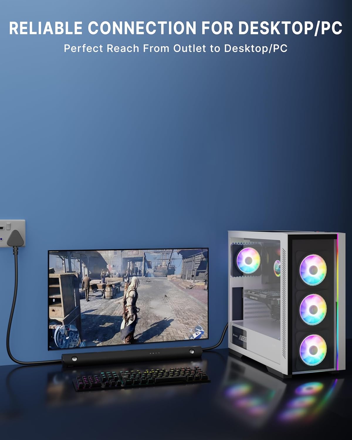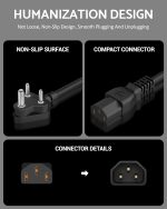 CONVENIENT – power cords provide a spare cable to keep as a handy replacement in case another power cable goes bad or you need a different length; Pair with a computer and monitor to have matching cable lengths for a tidy installation; More convenient and secure than adding an extension cable to a short AC power cord