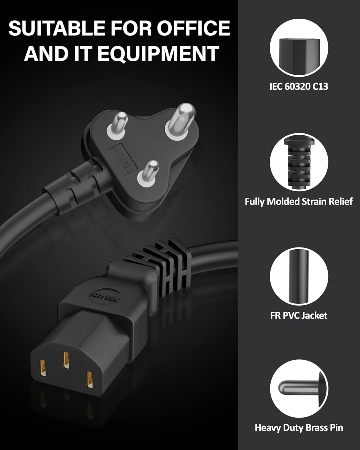 16 AWG GAUGE – computer power cable is rated for 6 amps to support common power requirements; Heavier gauge but flexible cable is safer and more reliable than most 18 AWG power cables that come with your equipment or are sold as replacement cables