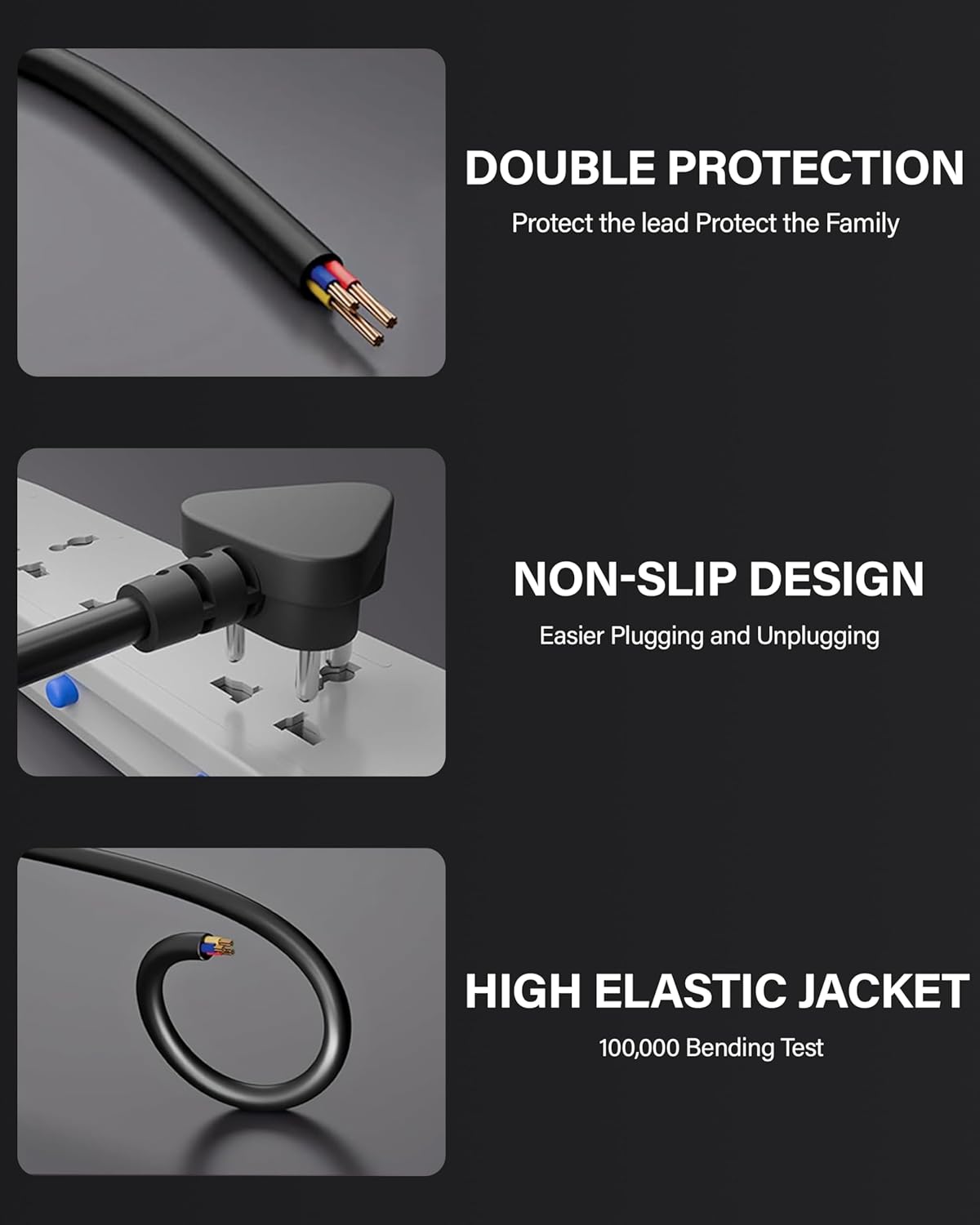 OVERLOAD PROTECTION – Overload protection with high quality wires. Anti-Interference feature with better Isolation materials, better quality rubberized texture Cord