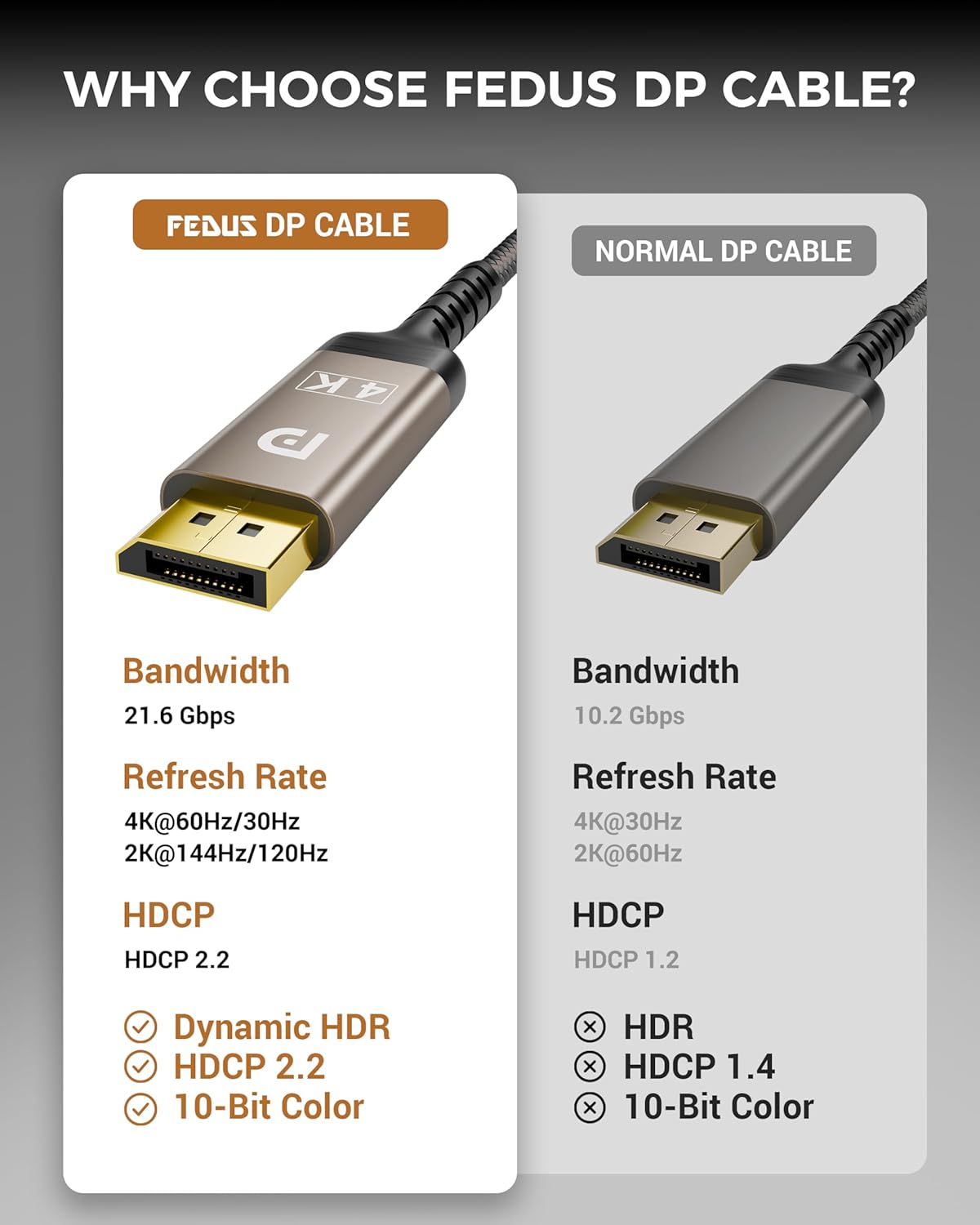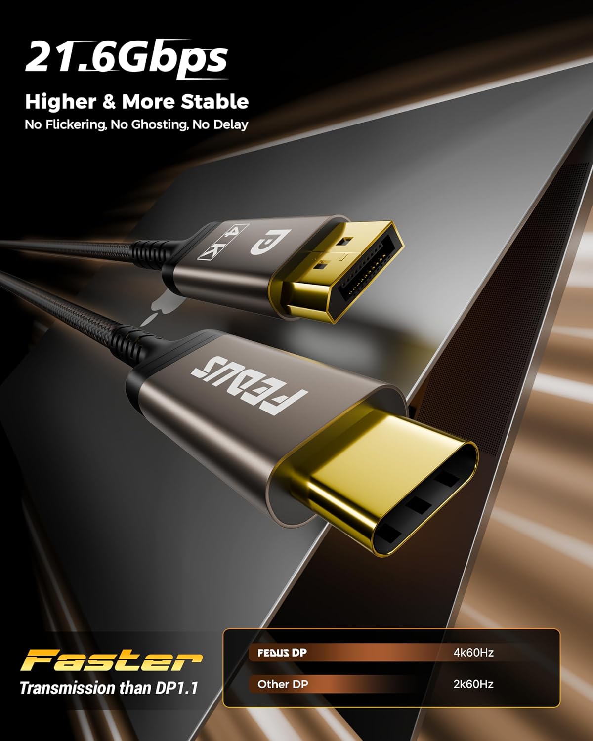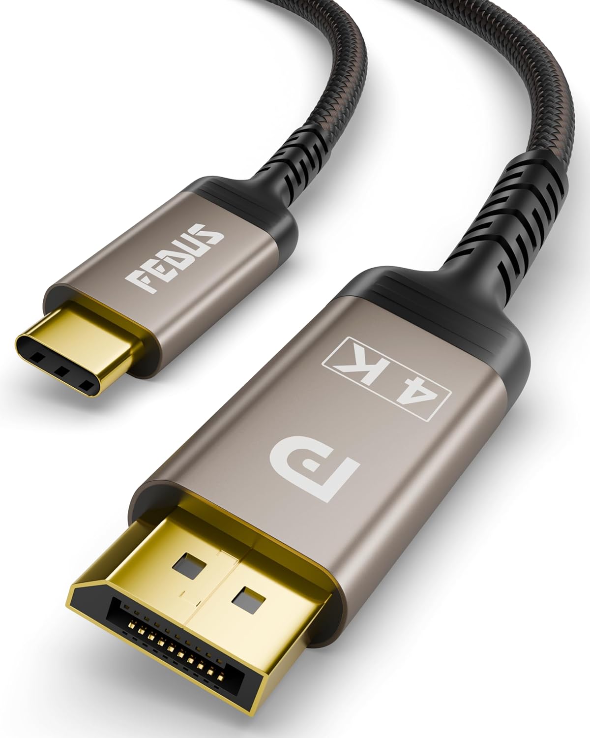 FEDUS USB Cable Type-C To Displayport DP 1.2M Cable,Unidirectional 21.6Gbps 4K60Hz,2K@144Hz,Thunderbolt 3/4 To DP Cord Compatible With iPad,Macbook Pro/Air,Surface,Imac,Galaxy,XPS,iPhone 16/15,Black