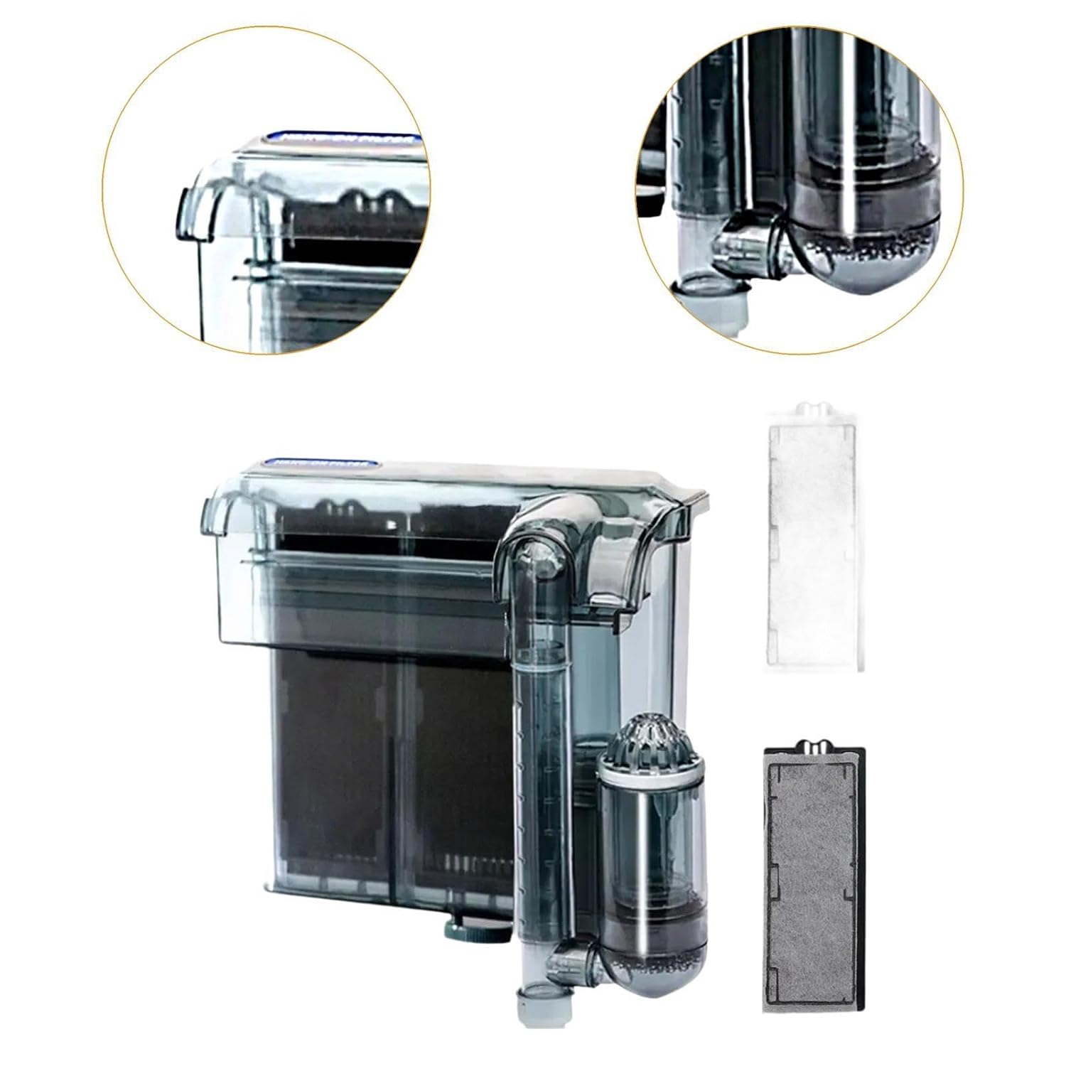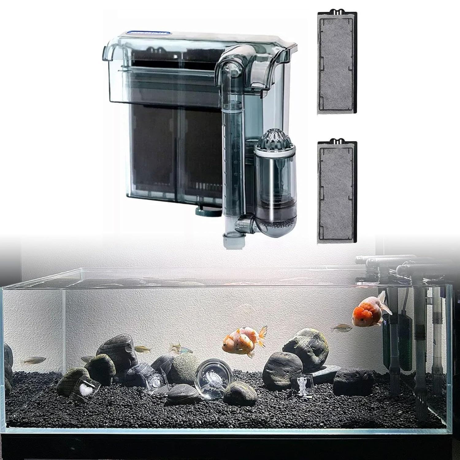 Versatile Compatibility: Suitable for aquariums or tanks with a capacity of 40-80L, this filter can also be used in tanks that require a waterfall effect without filtration. It includes prefilter sponges to prevent small fish and shrimp from being drawn into the filter system