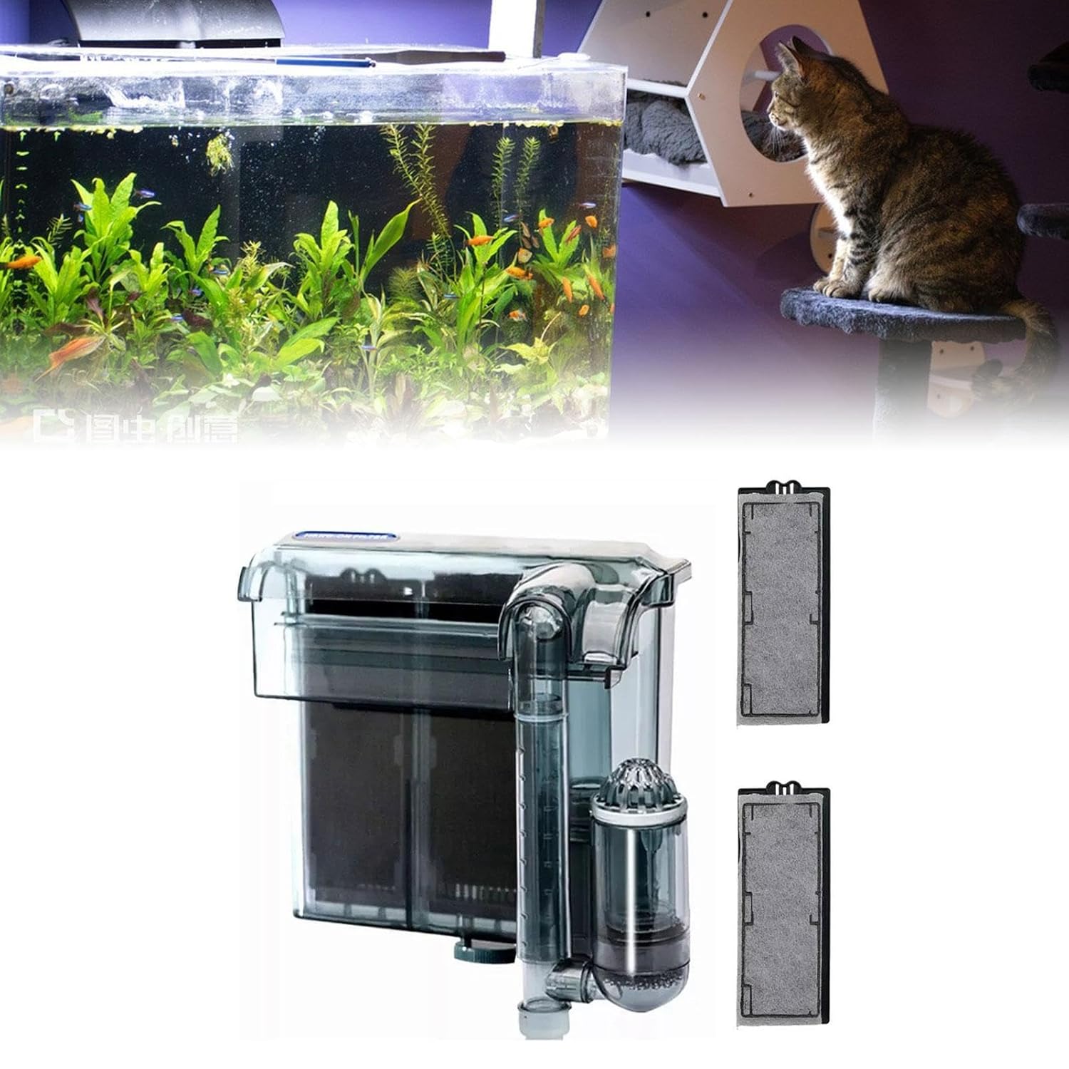 【Versatile Compatibility】: Suitable for aquariums or tanks with a capacity of 40-80L, this filter can also be used in tanks that require a waterfall effect without filtration. It includes prefilter sponges to prevent small fish and shrimp from being drawn into the filter system