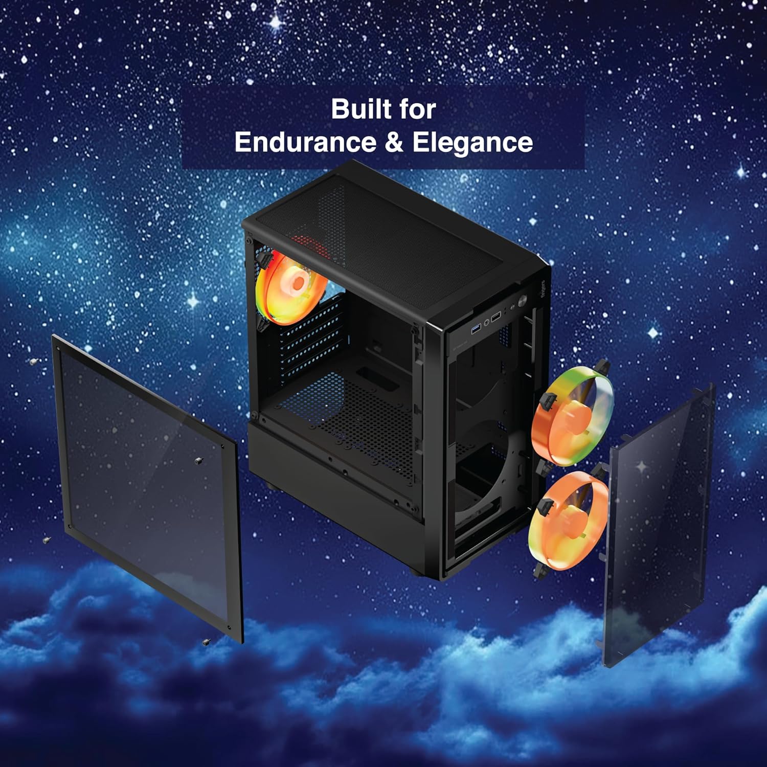 🔳 Full 3D Glass Panels – Unmatched Visual Appeal: Show off your build with edge-to-edge 3D toughened glass on the front and left sides for a crystal-clear view of your components and ARGB lighting.